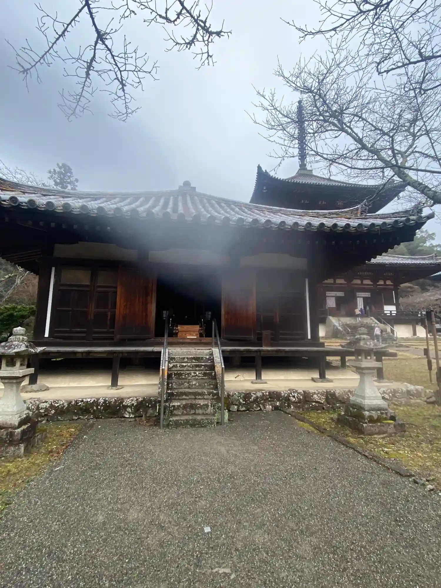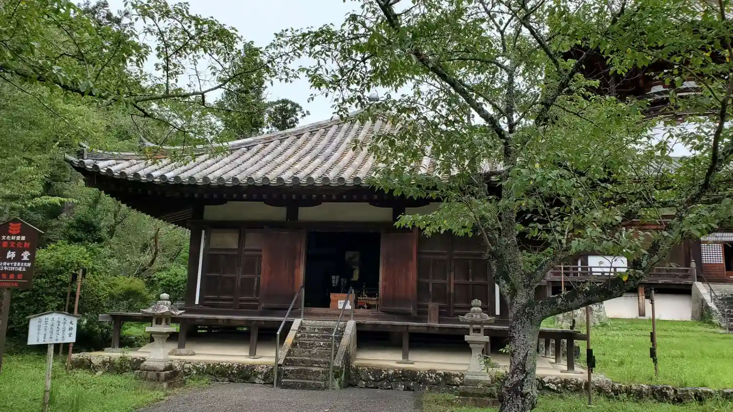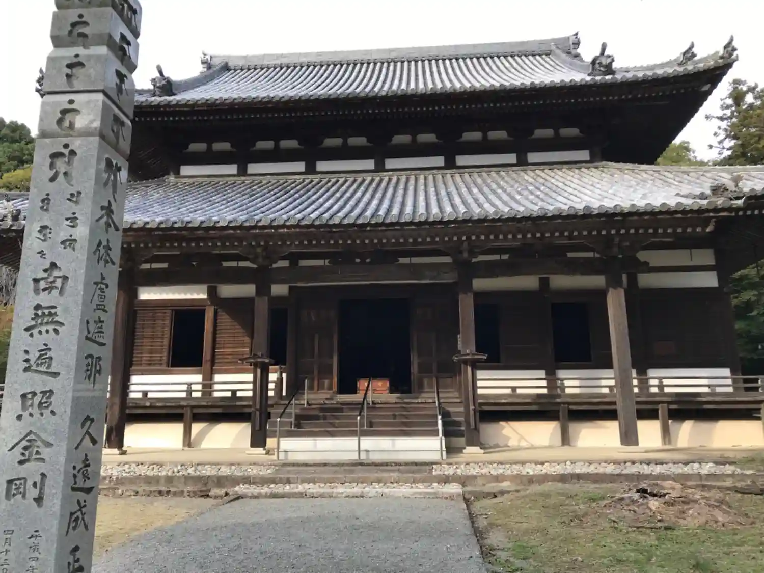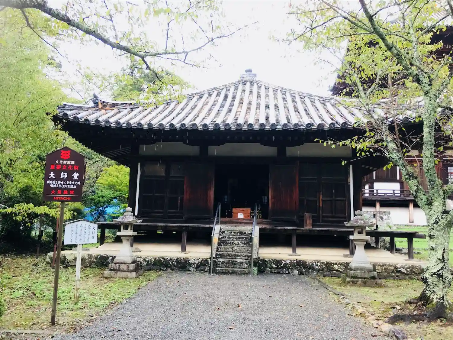 石段を上がるとまず目に入るのは大伝法堂。中には巨大な大日如来・金剛薩埵・尊勝仏頂、三体の仏像が安置されています。(写真不可)