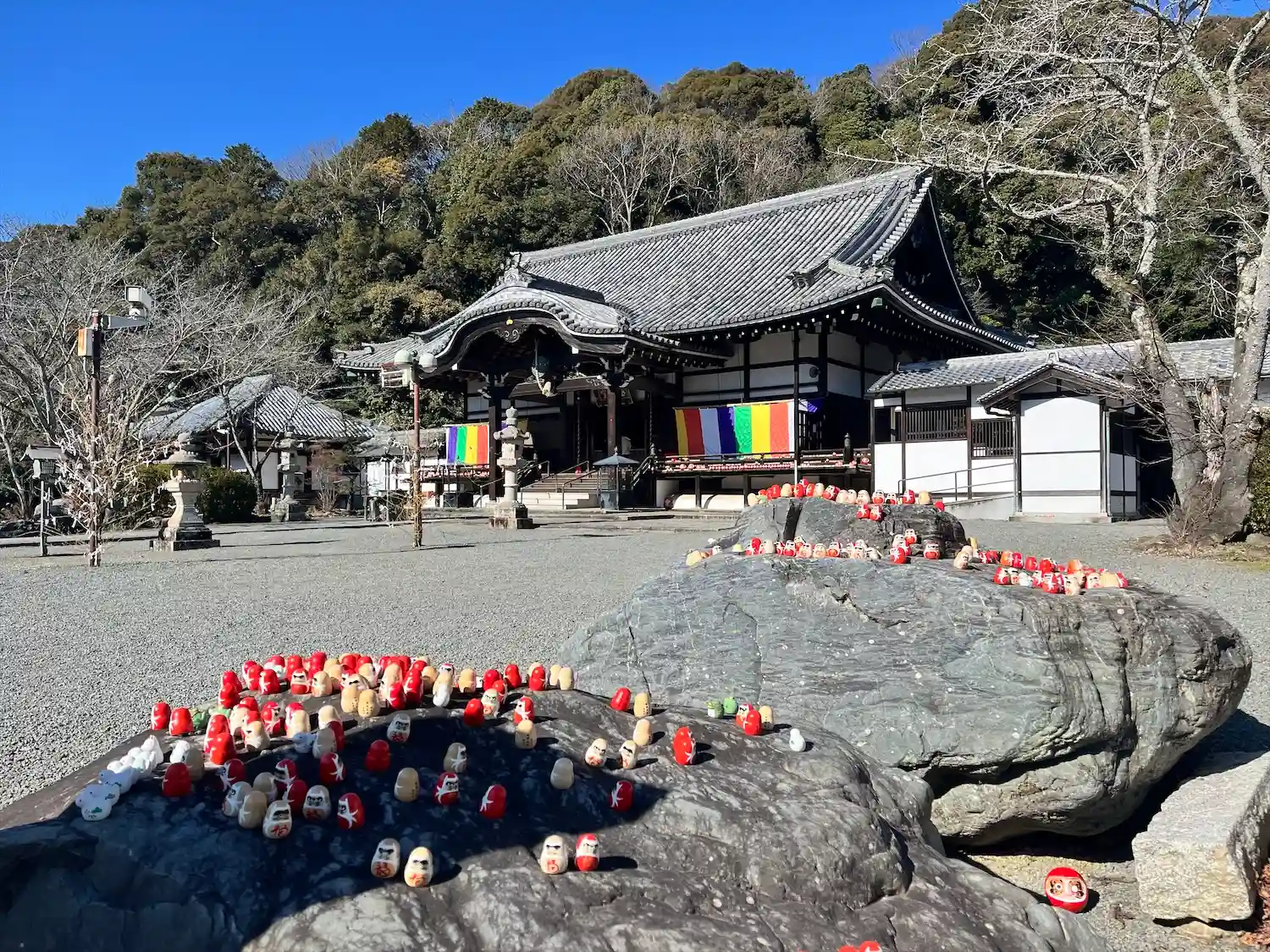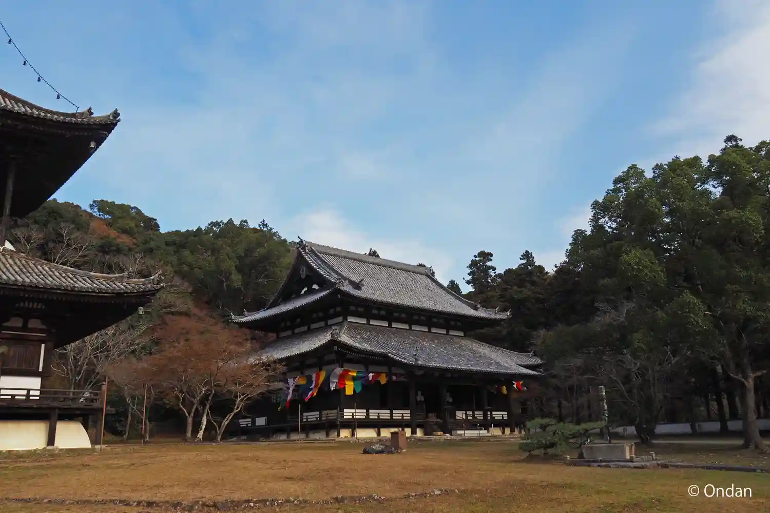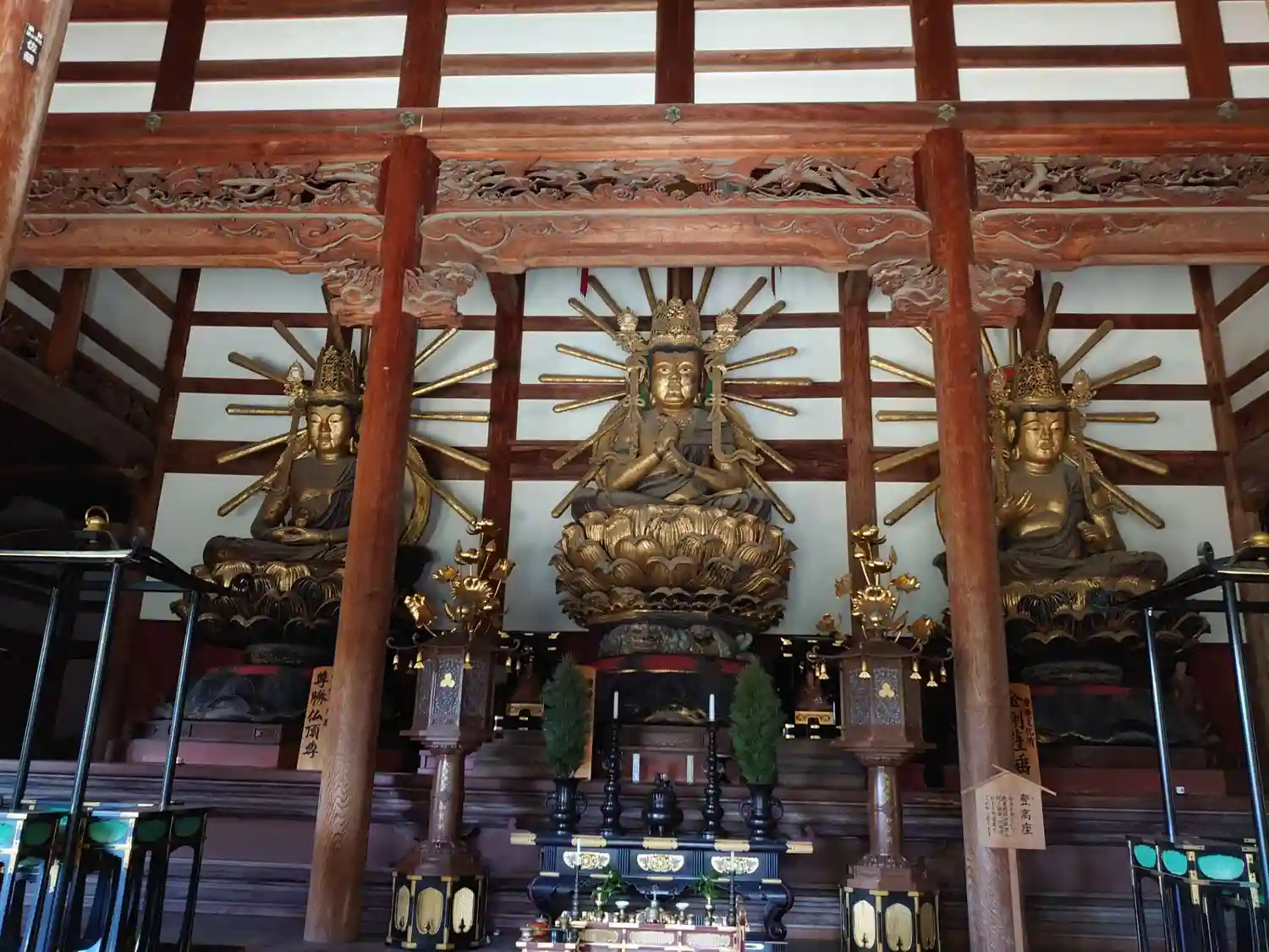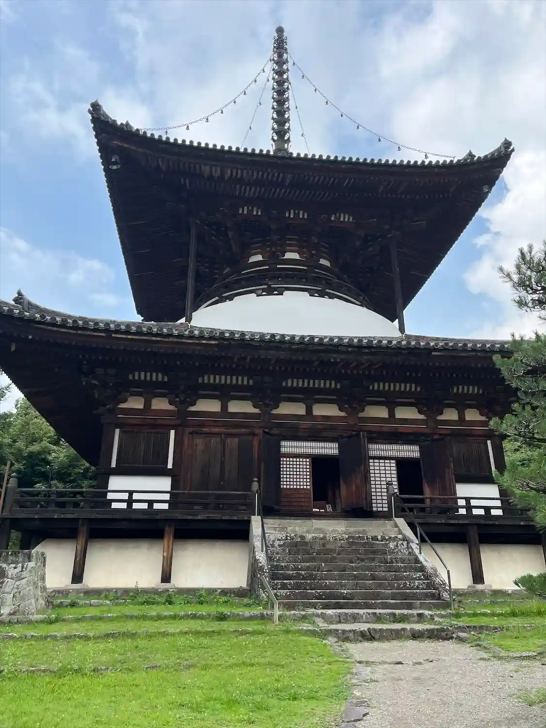 石段を上がるとまず目に入るのは大伝法堂。中には巨大な大日如来・金剛薩埵・尊勝仏頂、三体の仏像が安置されています。(写真不可)