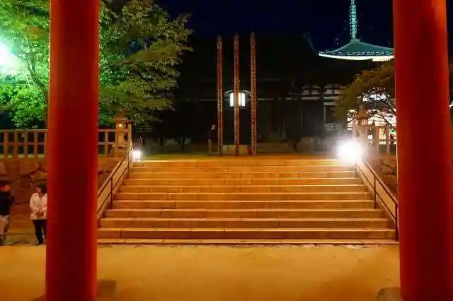 日が暮れるのを待ち、燈籠の明かりが灯った壇上伽藍をご参拝しました。