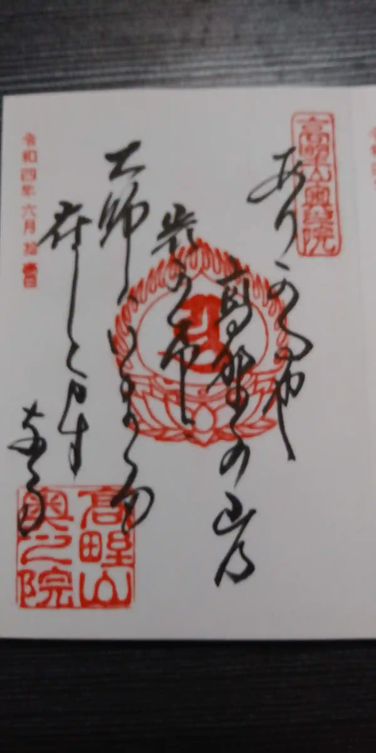 | 御朱印 | あり 真ん中に梵字と弘法大師、右下に高野山、左下に奥之院と書かれ、右上に弘法大師諡号一、一〇〇記念の印、真ん中に梵字の印、右下に高野山奥之院の印が押されています。
