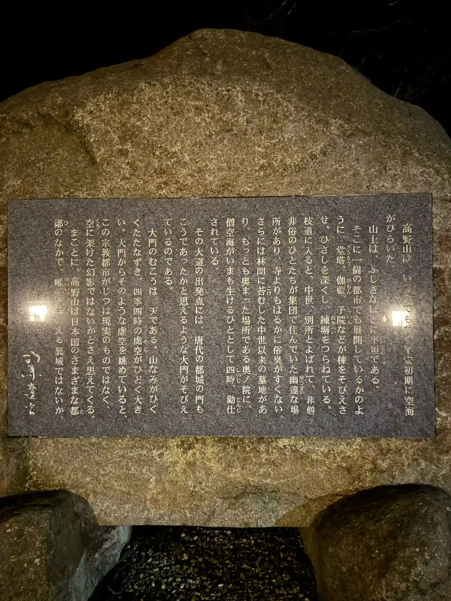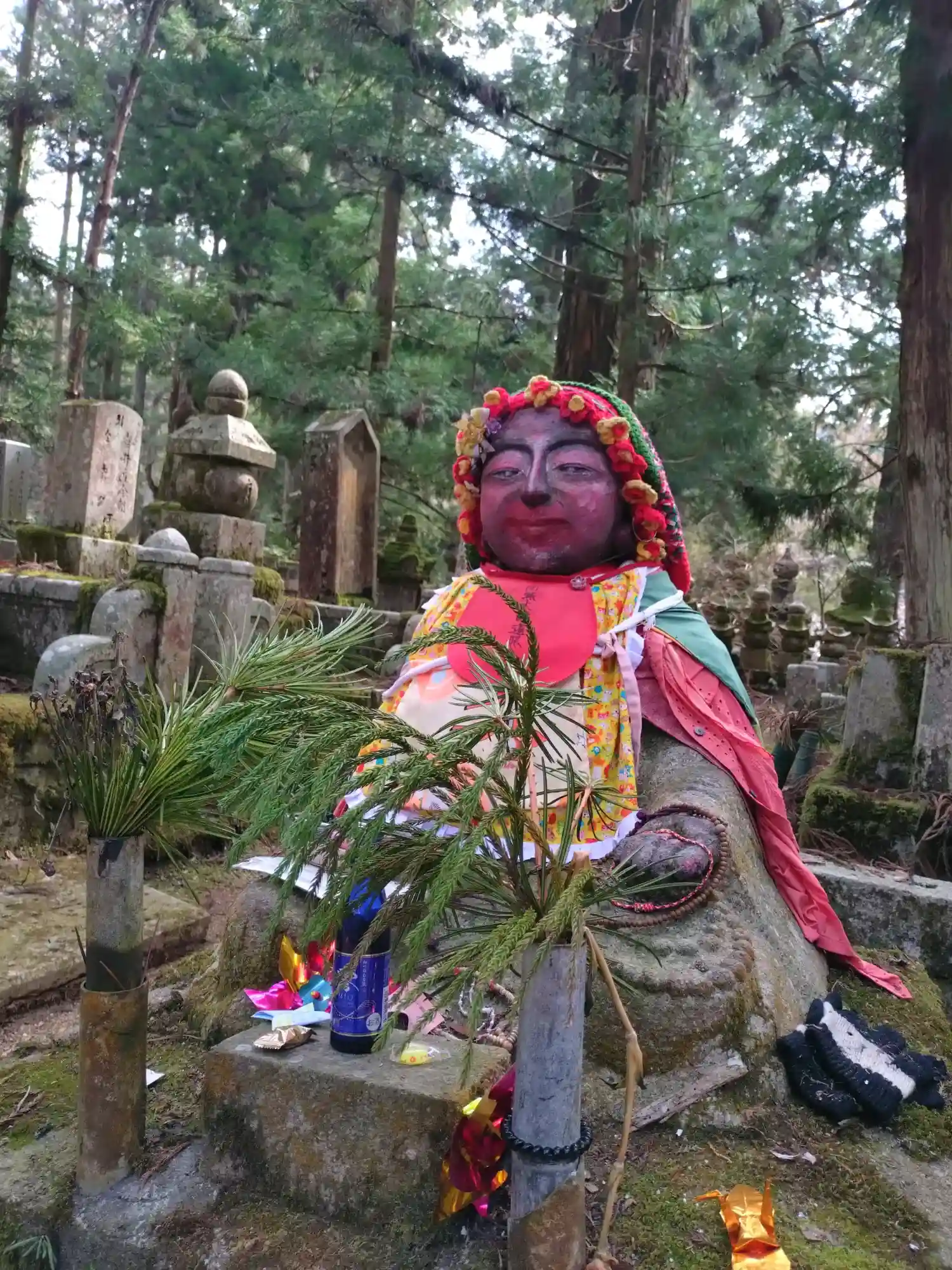 灯籠堂を出て裏の山手に出たところでお線香とロウソクをお供えさせていただきました。御廟の真後ろの山の手に大きな梵字を刻んだ石柱が二つあってまるで神社の鳥居の様な雰囲気を感じるところがありました。そこの建物壁側に長椅子があって御廟を背にしながらしばらくじっと座っていましたが、奥の院を訪れているんだなぁ、こころ静かにできていいなぁって気持ちになれました🥹🙏🕯️🙇🏻♂️お勧めの場所です🥹🙏