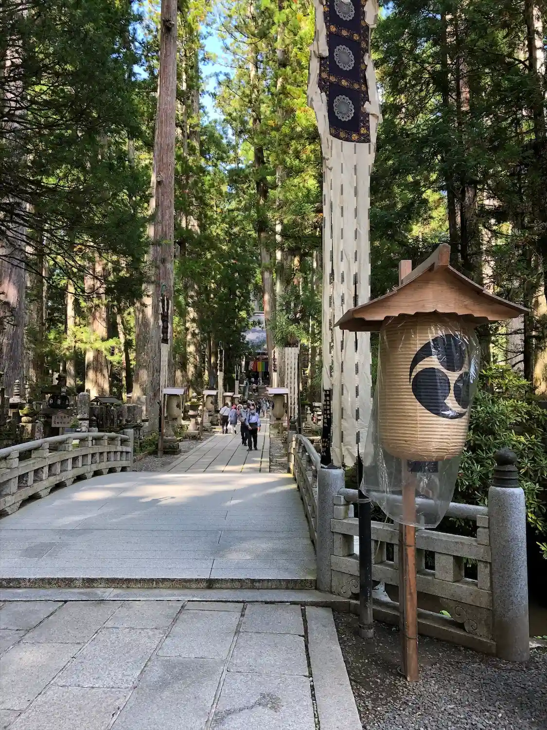 灯籠堂を出て裏の山手に出たところでお線香とロウソクをお供えさせていただきました。御廟の真後ろの山の手に大きな梵字を刻んだ石柱が二つあってまるで神社の鳥居の様な雰囲気を感じるところがありました。そこの建物壁側に長椅子があって御廟を背にしながらしばらくじっと座っていましたが、奥の院を訪れているんだなぁ、こころ静かにできていいなぁって気持ちになれました🥹🙏🕯️🙇🏻♂️お勧めの場所です🥹🙏