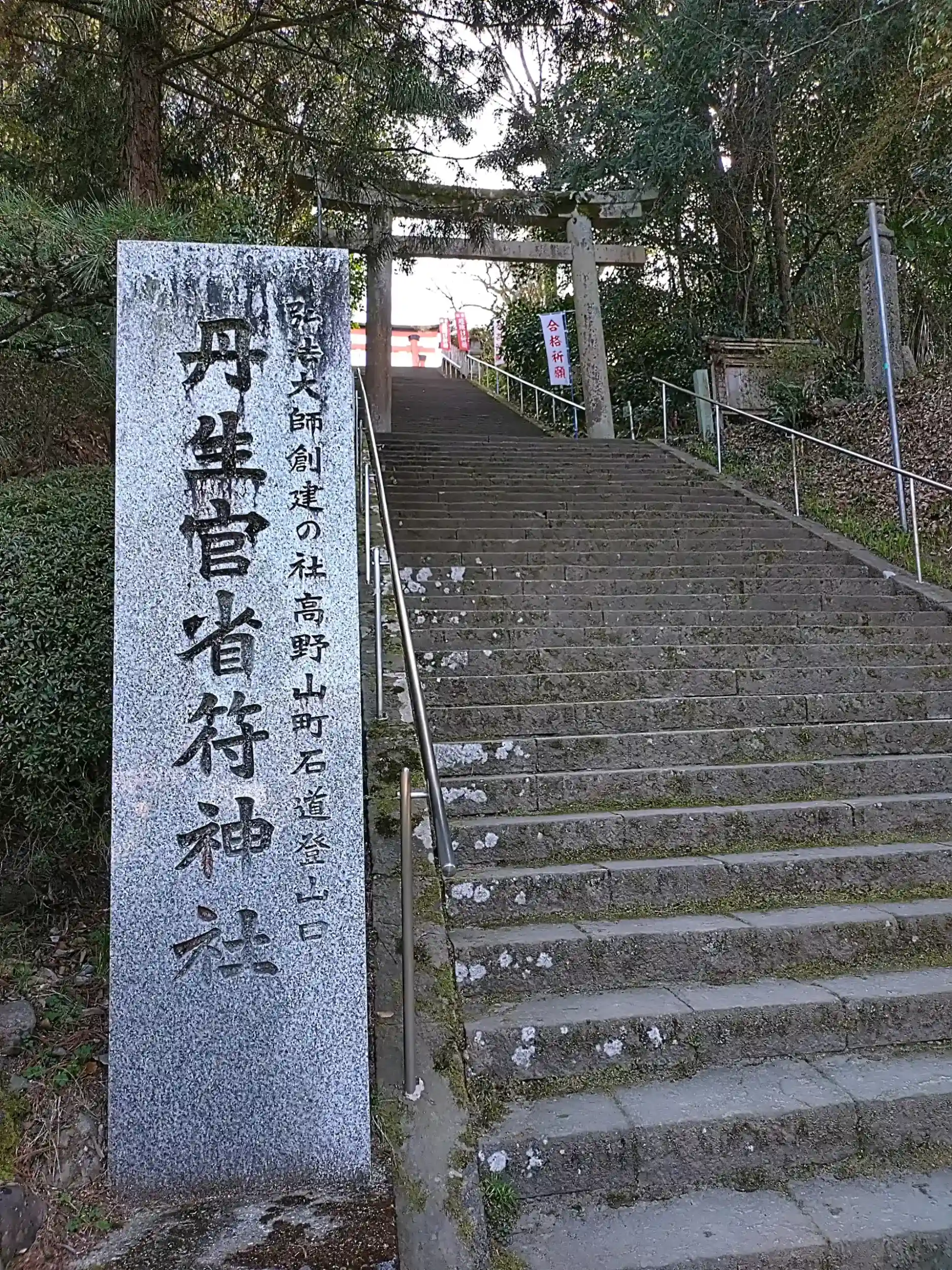 慈尊院から石造大鳥居をくぐり、石段119段登った先に…