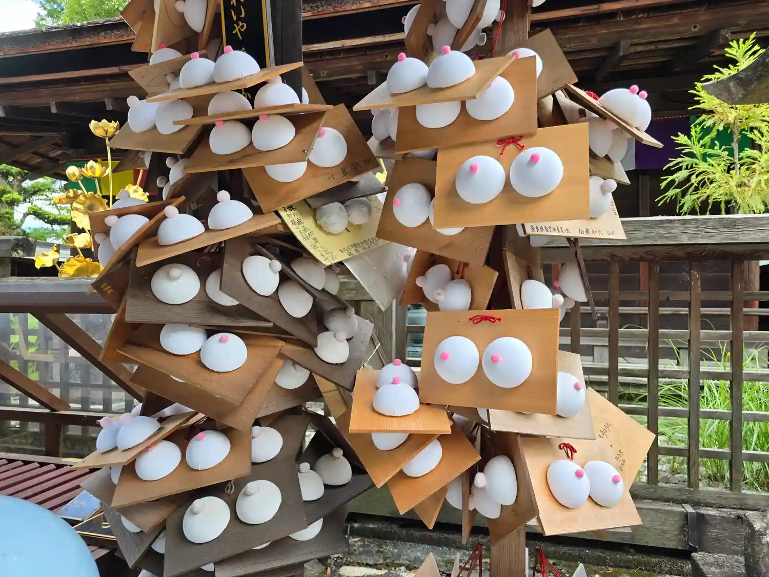 弥勒堂に奉納された乳房型絵馬が印象的でした。