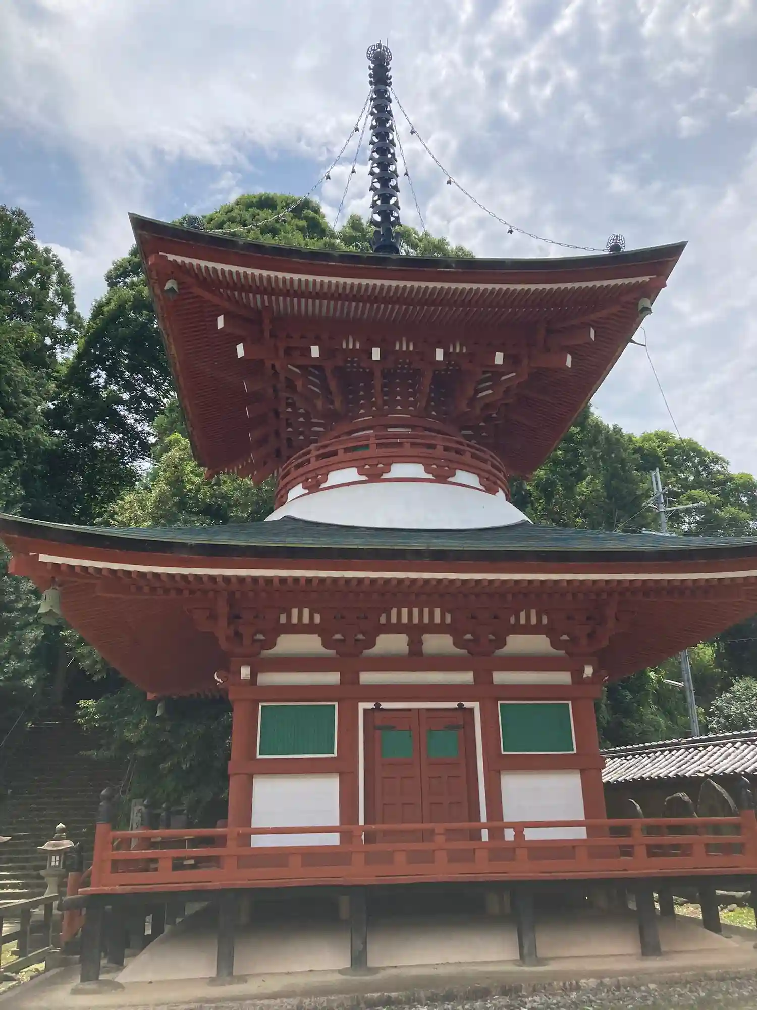 拝堂の西側にある多宝塔。所願成就のご利益があります。