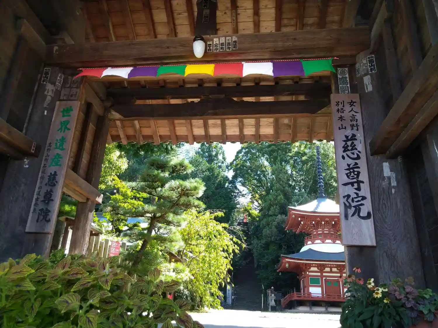 丹生官省符神社の石段を下りていくと、そのまま慈尊院の境内に出まし…