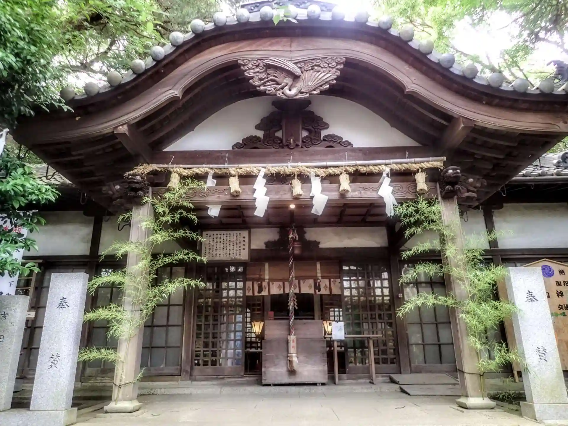 拝殿のすぐ両脇には青笹が飾られていました。