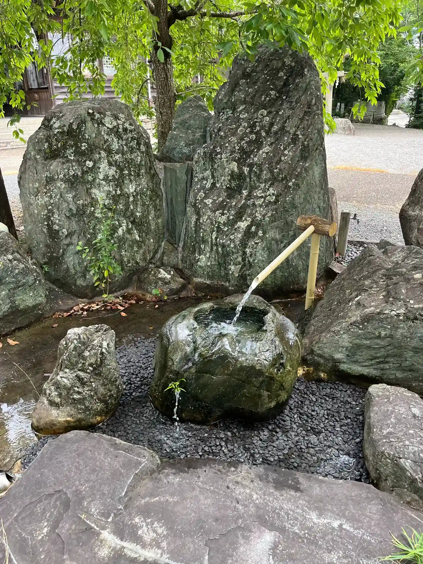境内の中央に湧水があります。(宮水・紫の水)