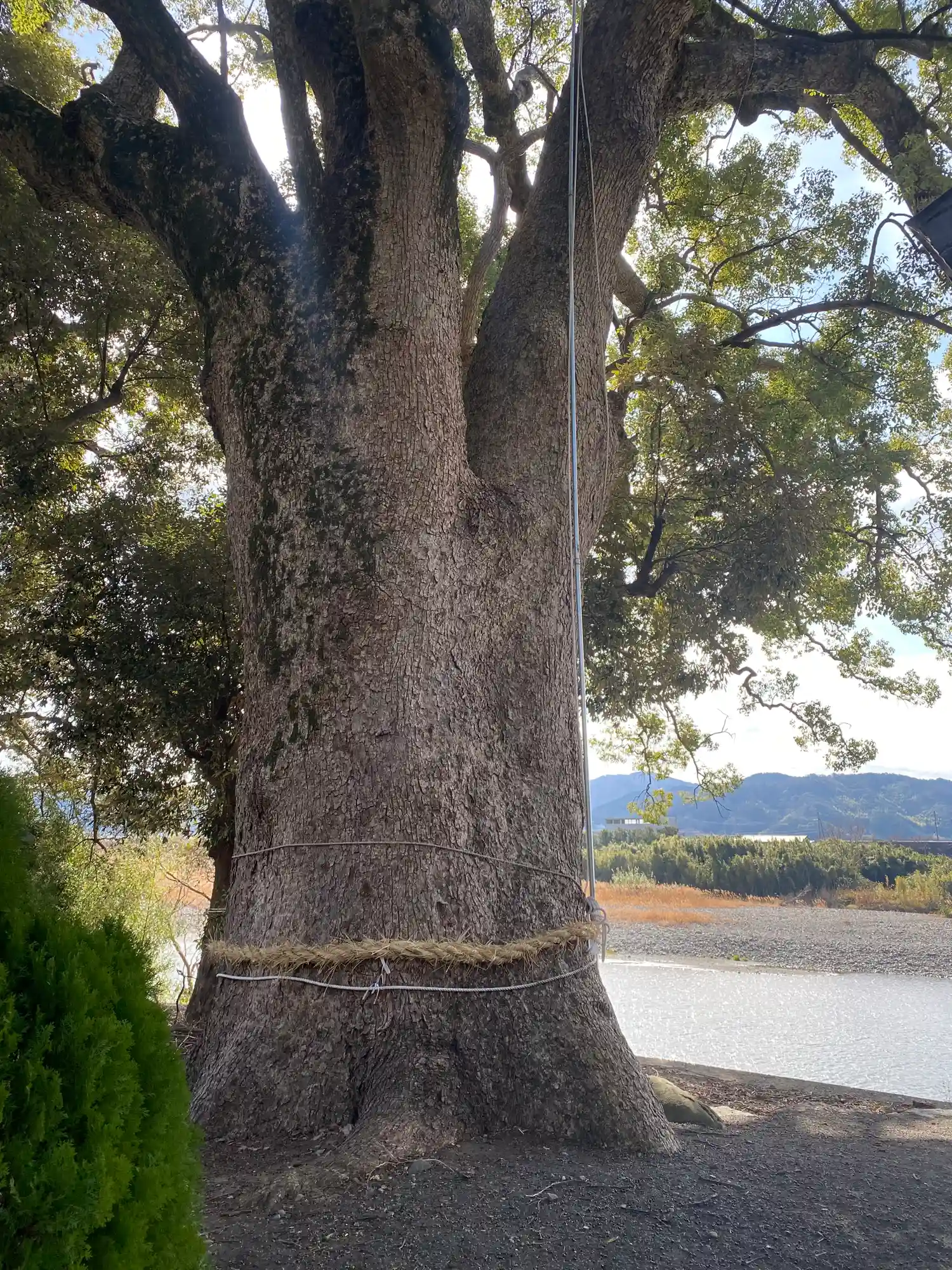 有田川のそばにある立派な神社で、すごく気持ちの良い風が吹いていました。昼…