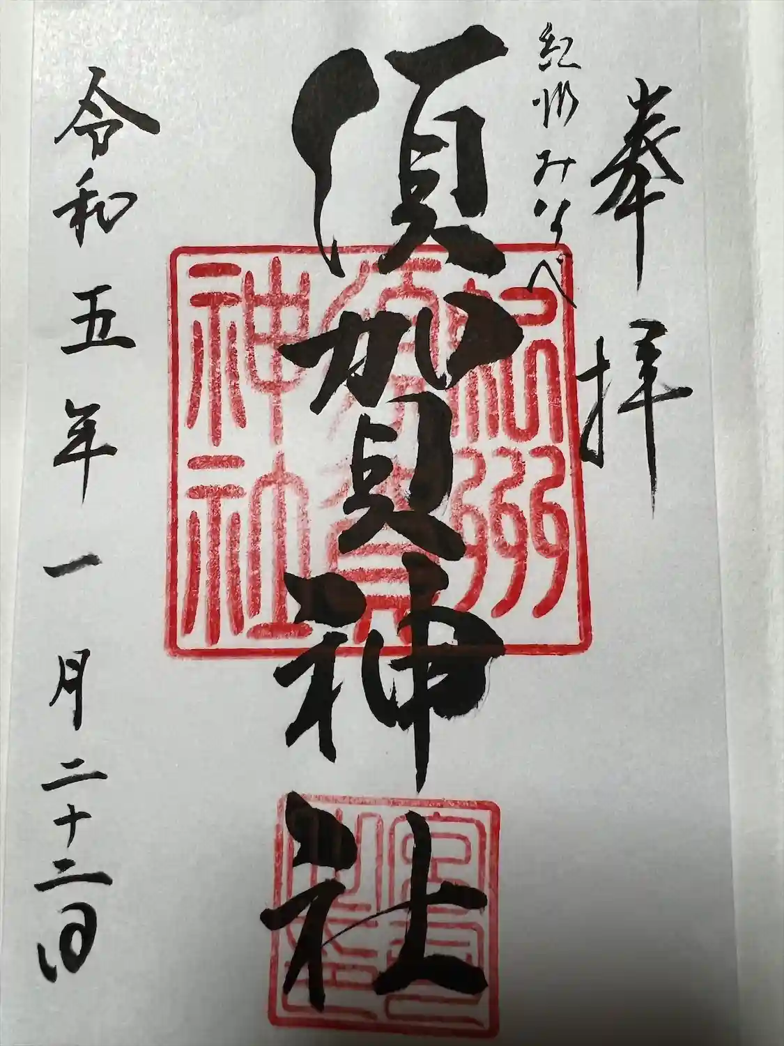 須賀神社(和歌山県)の御朱印です。