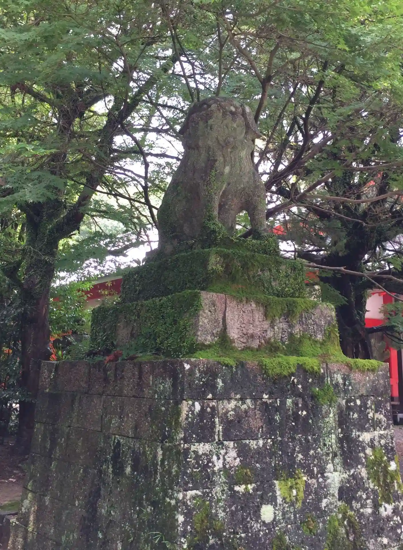 雨上がりの強烈な蒸し暑さの中、朱赤の社殿は参拝者で賑わっていました。