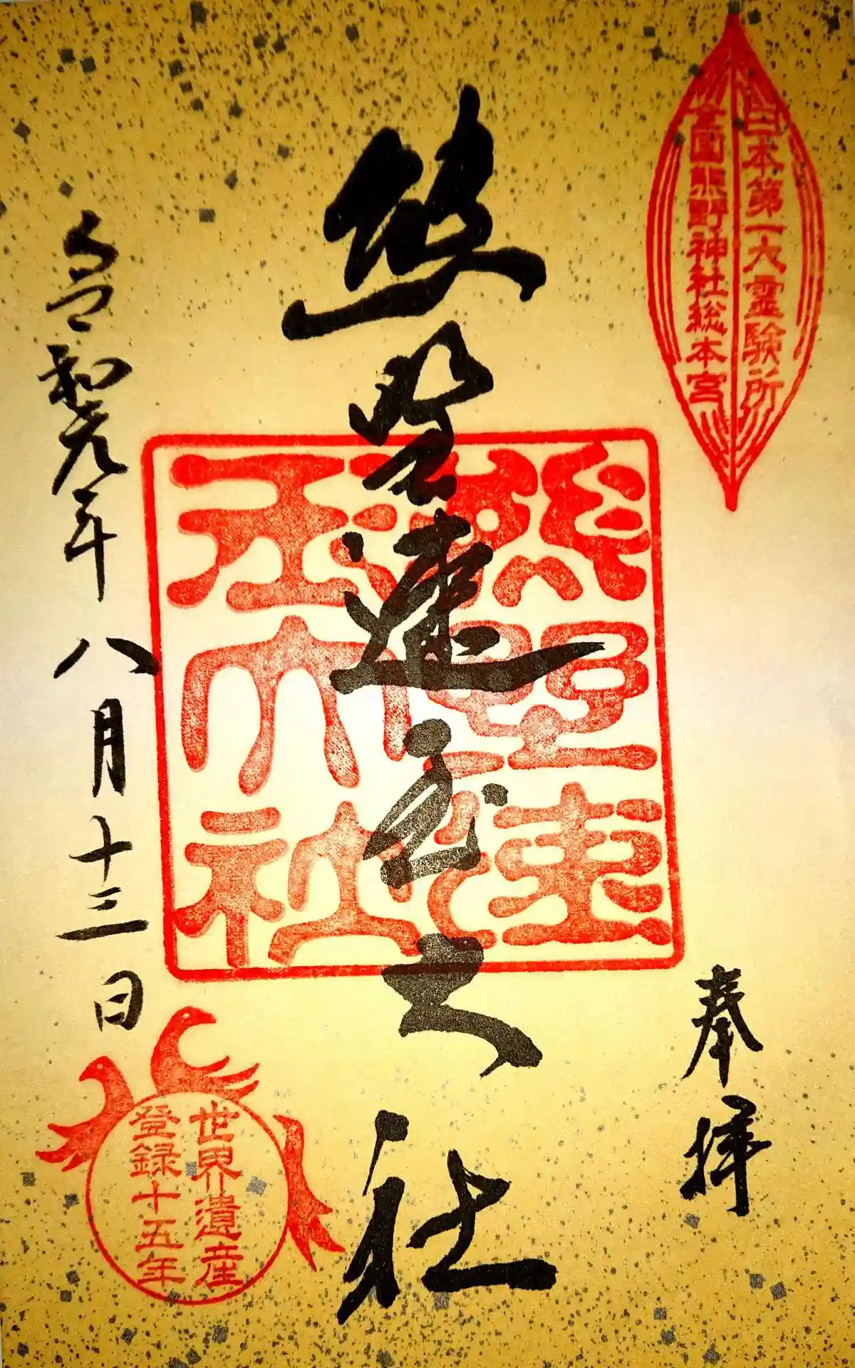 熊野速玉大社の通常御朱印と世界遺産15周年記念御朱印です。