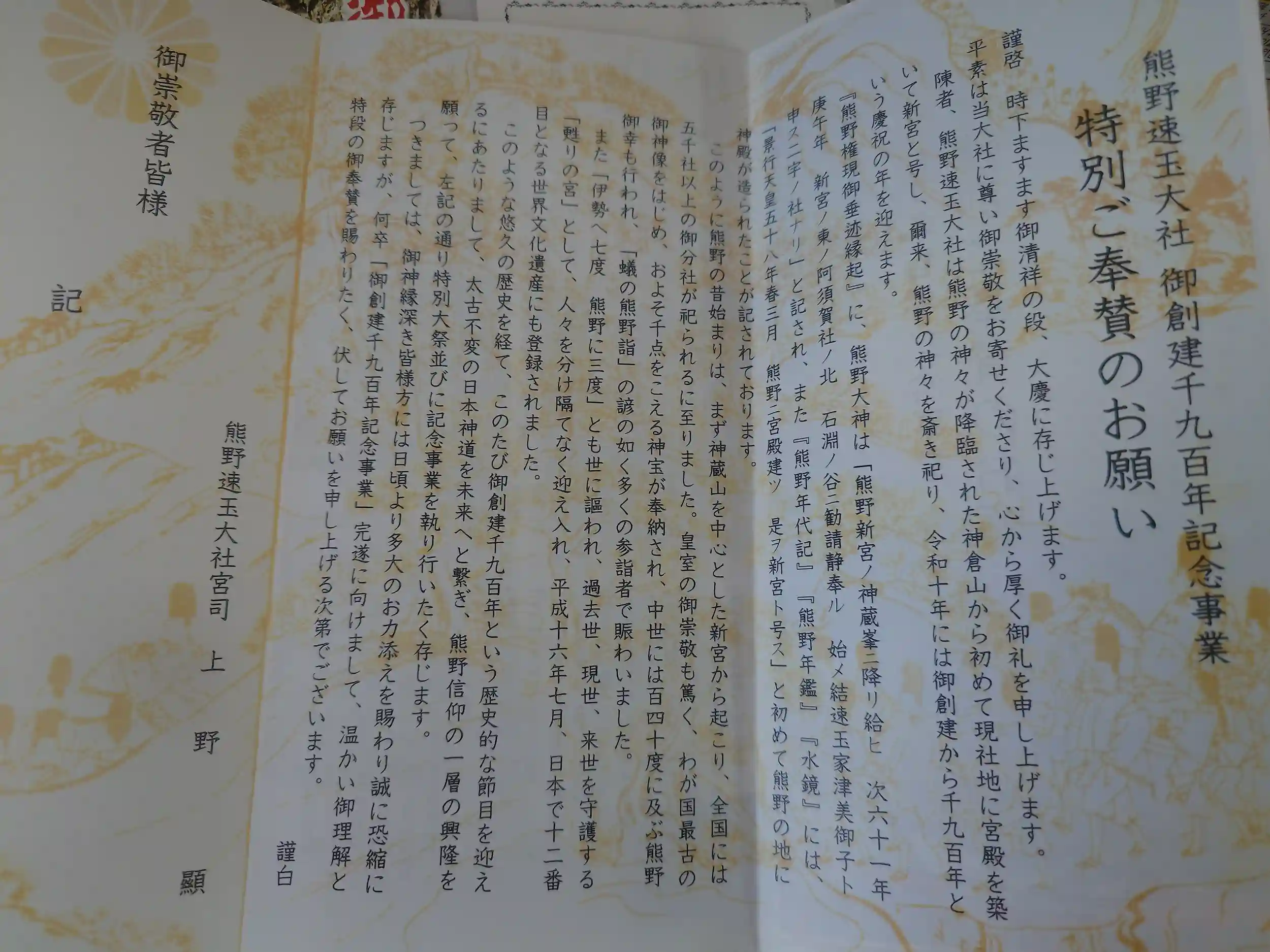 それから、特別御奉賛のお願いがありましたので、これも何かの御縁と思い微力ながら納めさせていただきました。