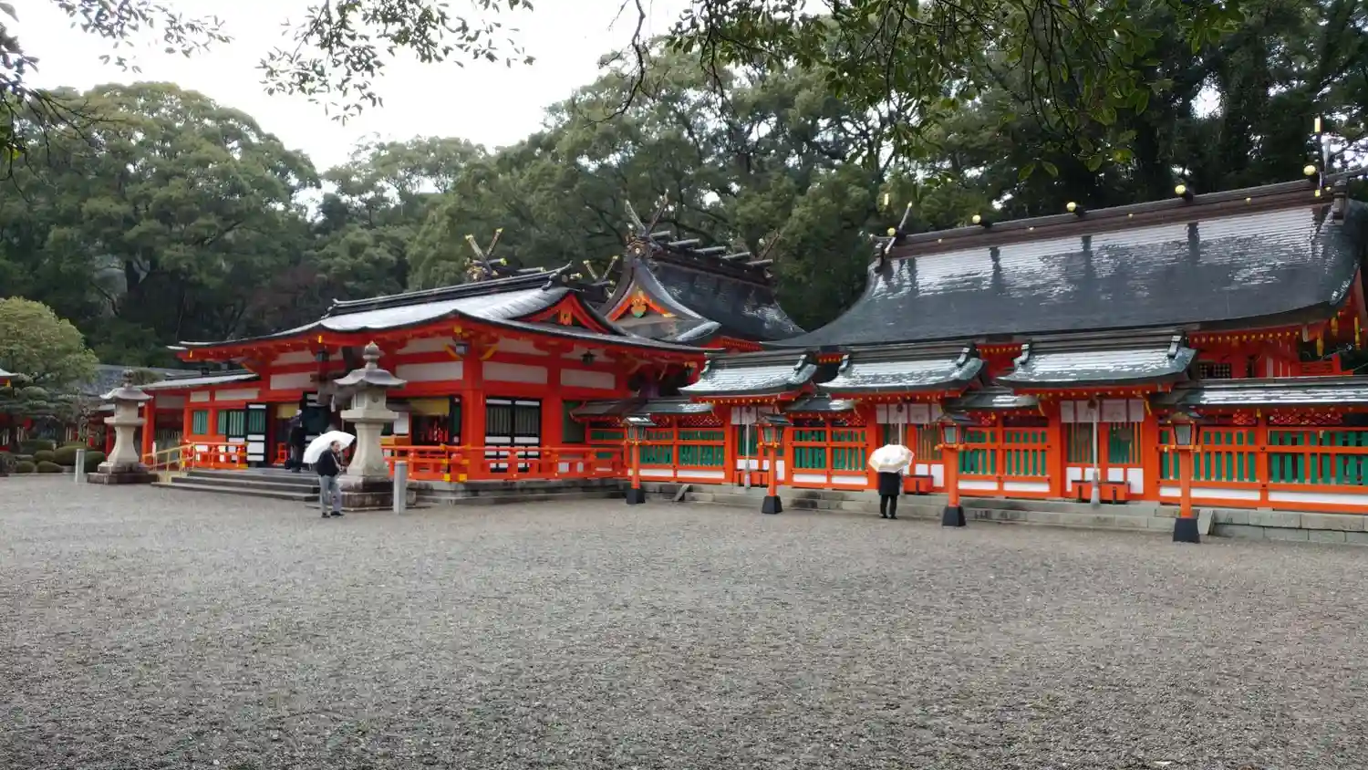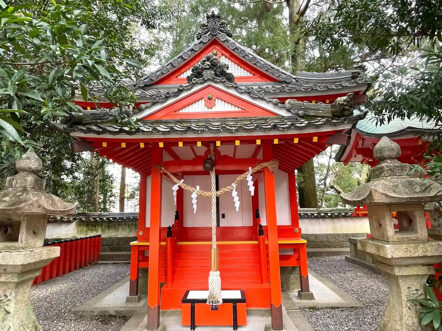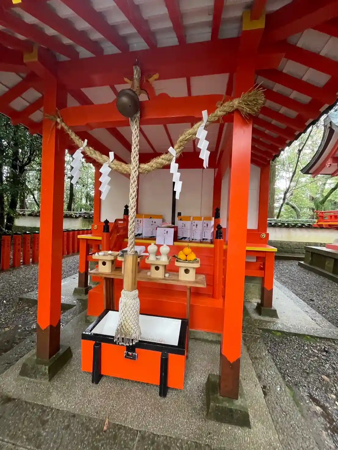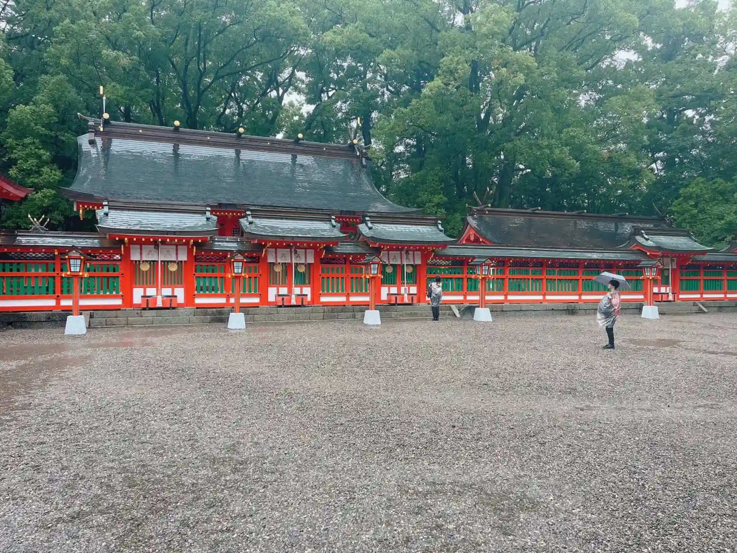 雨でしたが、かえって社殿や鳥居の朱色が映えている気がしまし…