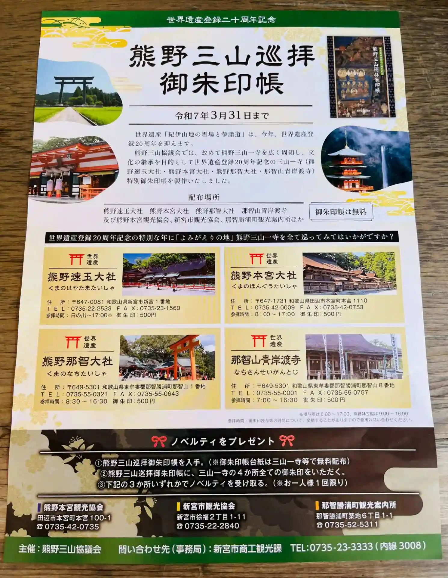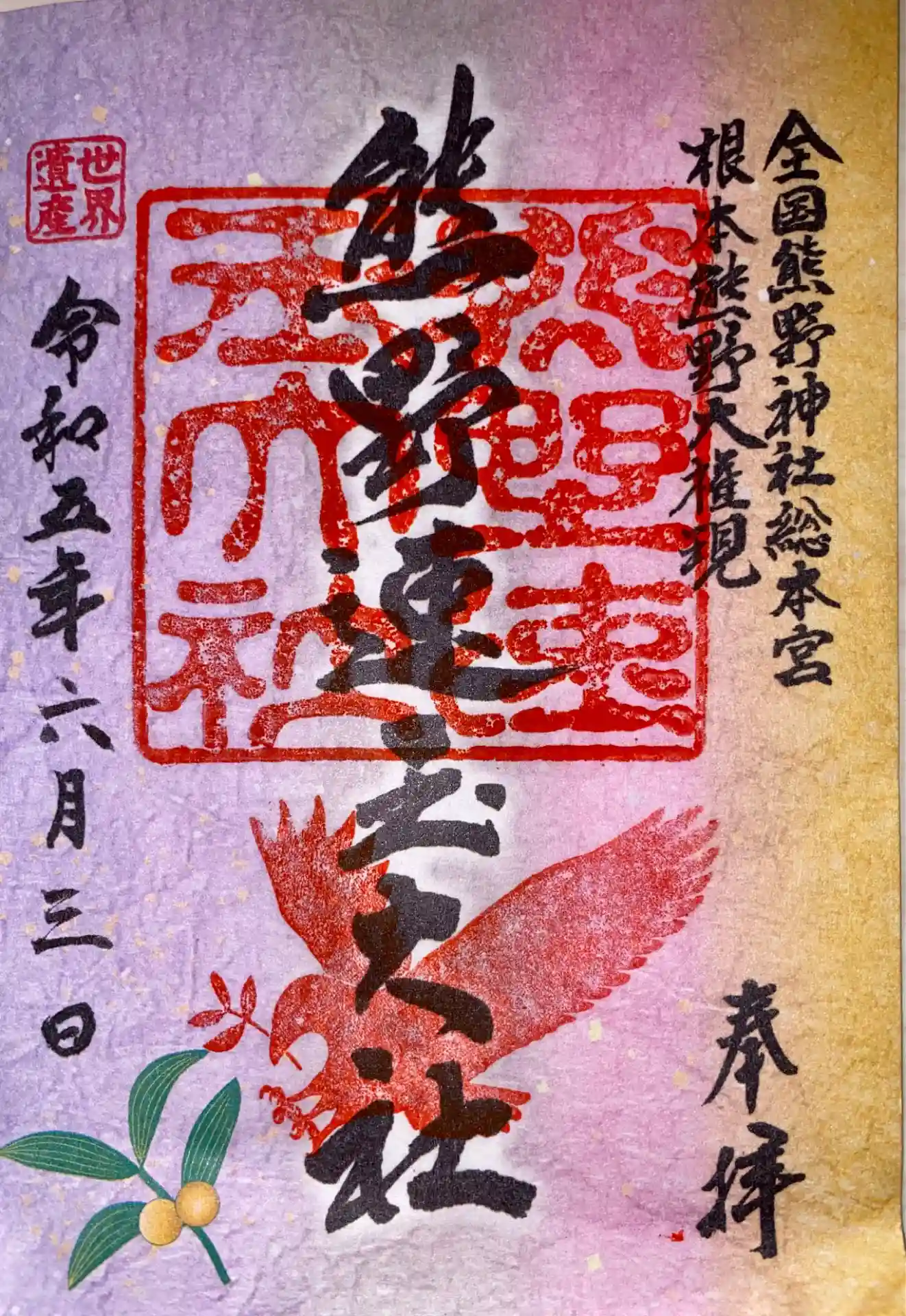 ・世界遺産登録20周年記念して熊野三山協議会が作製した朱印帳をいただき、参拝させて…
