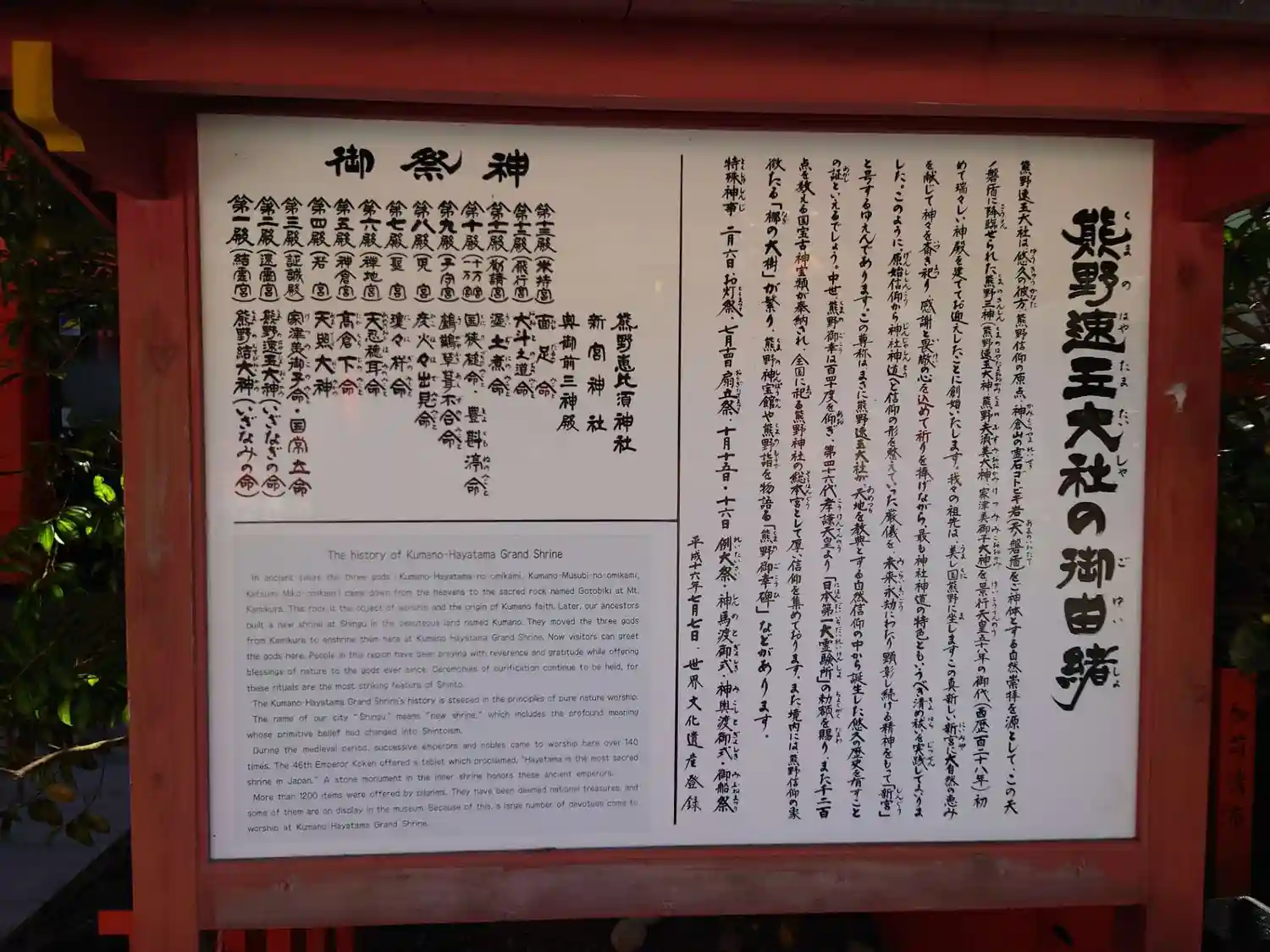 御祭神 熊野速玉大神、熊野夫須美大神