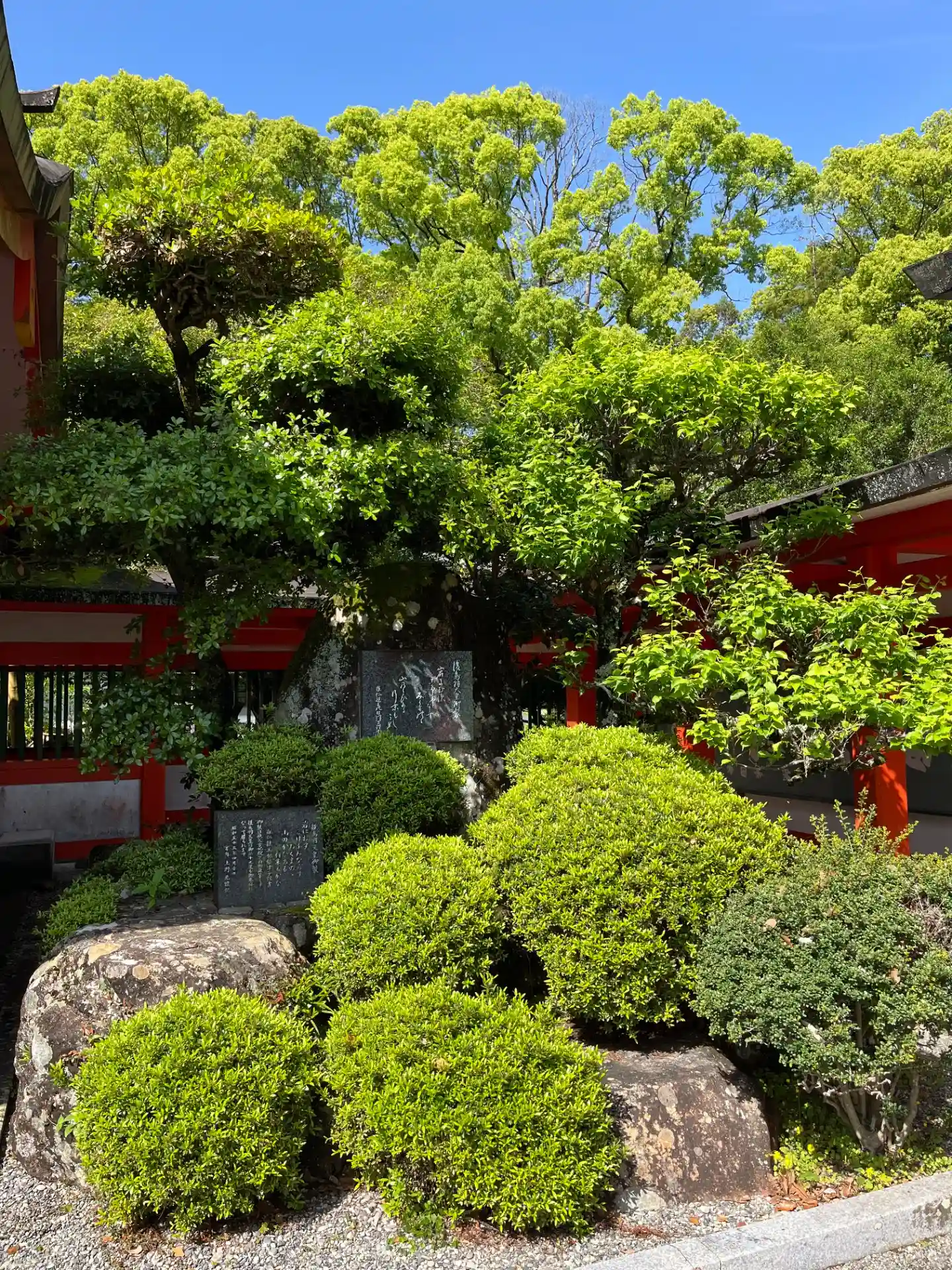 新緑とお社の朱色って映えますよねー。
