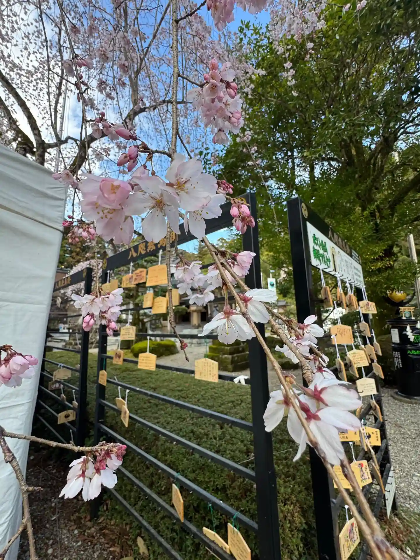 八咫烏ポストのそばにしだれ桜が咲いていました🌸