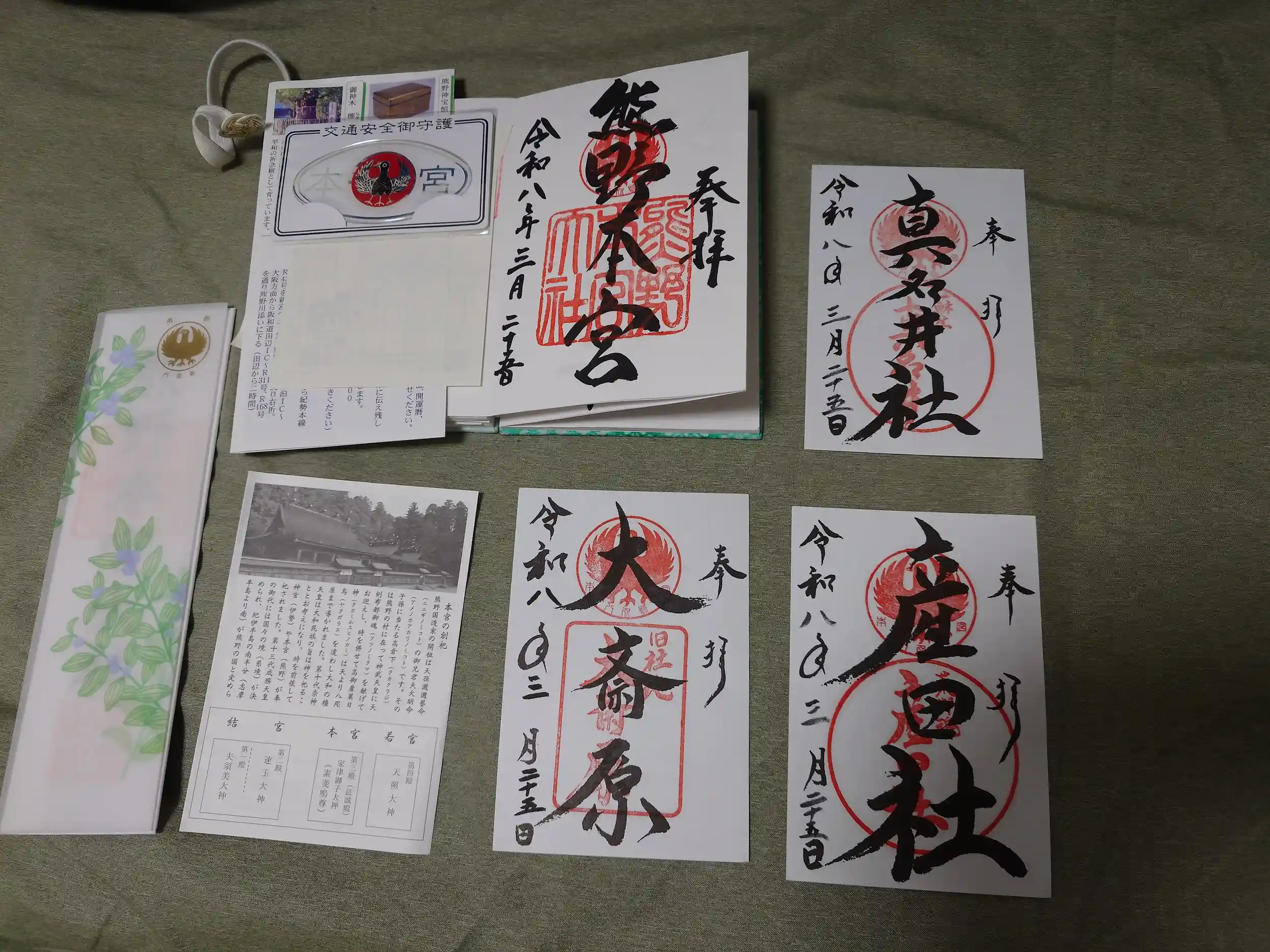 御朱印と交通安全ステッカー、神札を授かりました。この翌日、交通安全ステッカーをなくしてしまいました(泣)