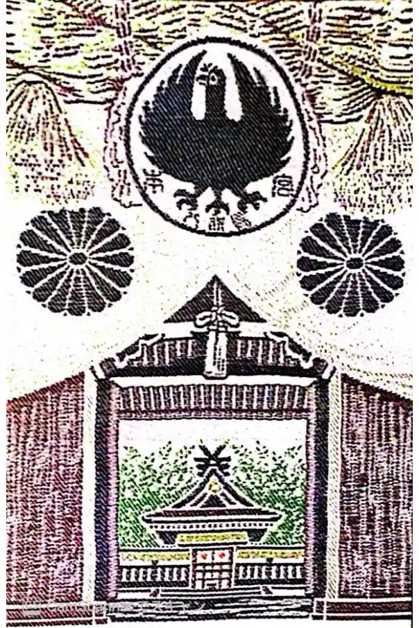 白色の地に、表面は大しめ縄と本宮八咫烏が掲げられた神門と奥に見える本殿が描かれ、裏面は熊野本宮大社の文字が入っています。
