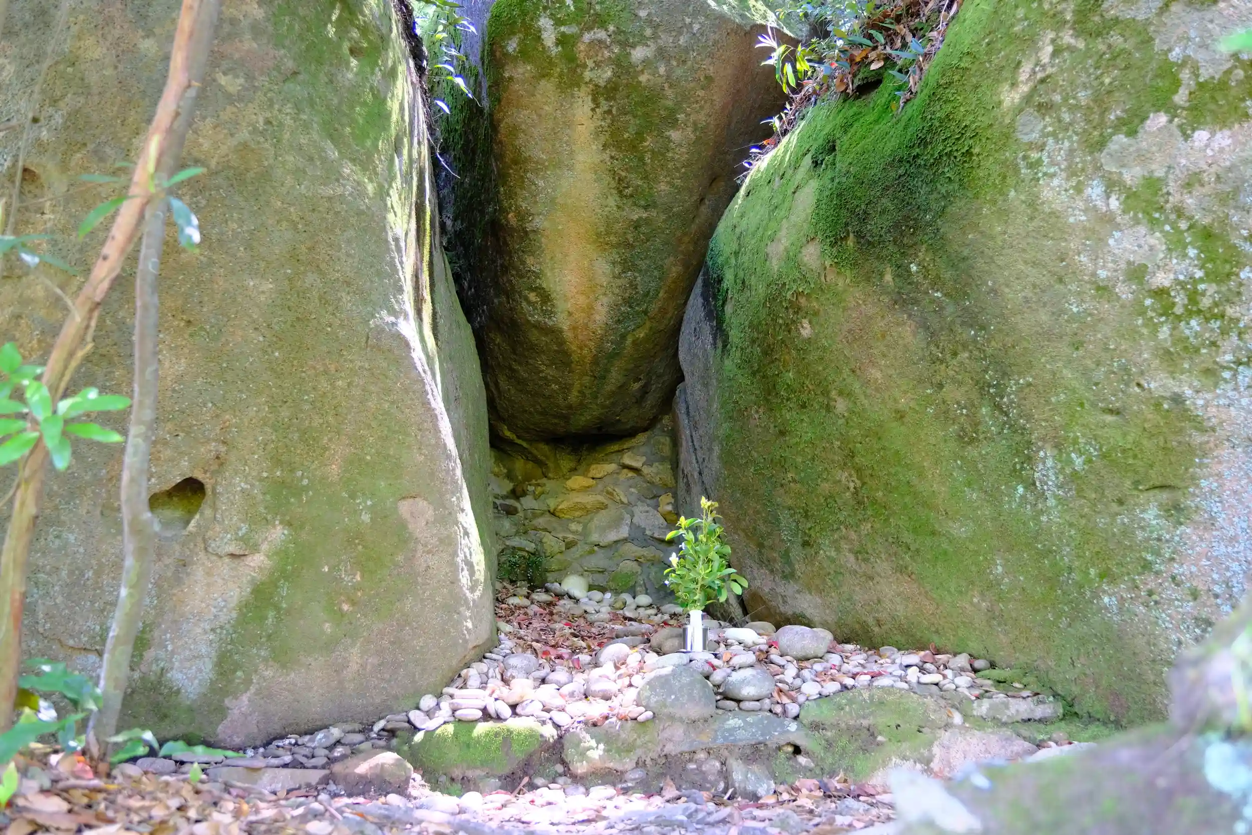 こんな山の上に舞台のような岩があるなんて。