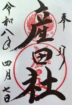 中央上には八咫烏(やたがらす)の印が、中央下には産田社の印が押された御朱印です。