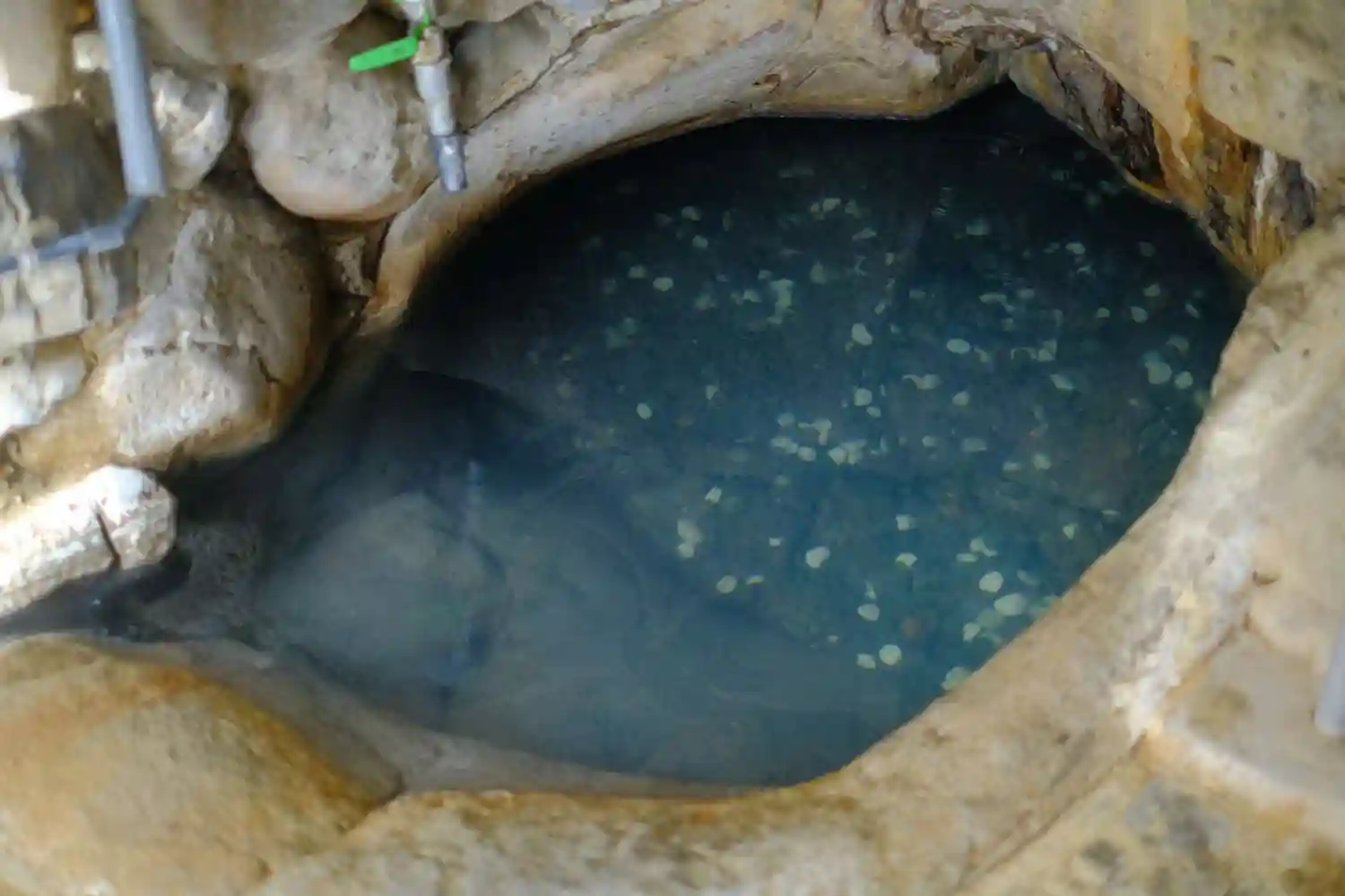 一日に七回も湯の色が変わると言われるつぼ湯。