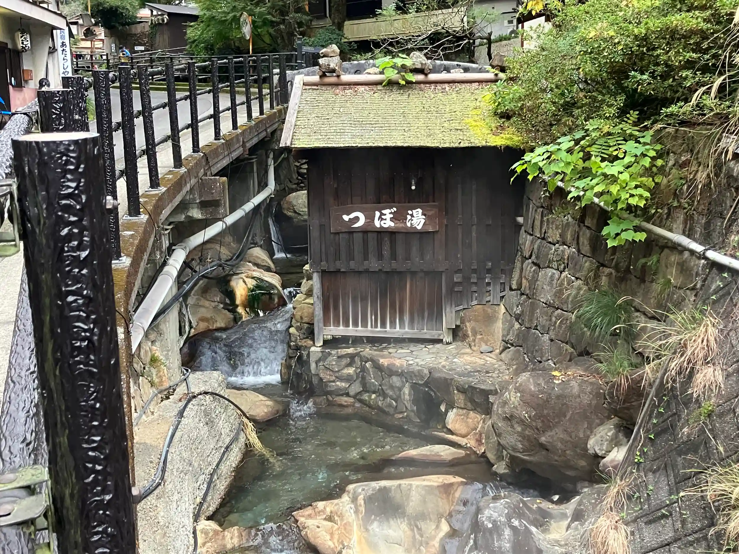 付近には日本最古の公衆浴場とされる「つぼ湯」がある。