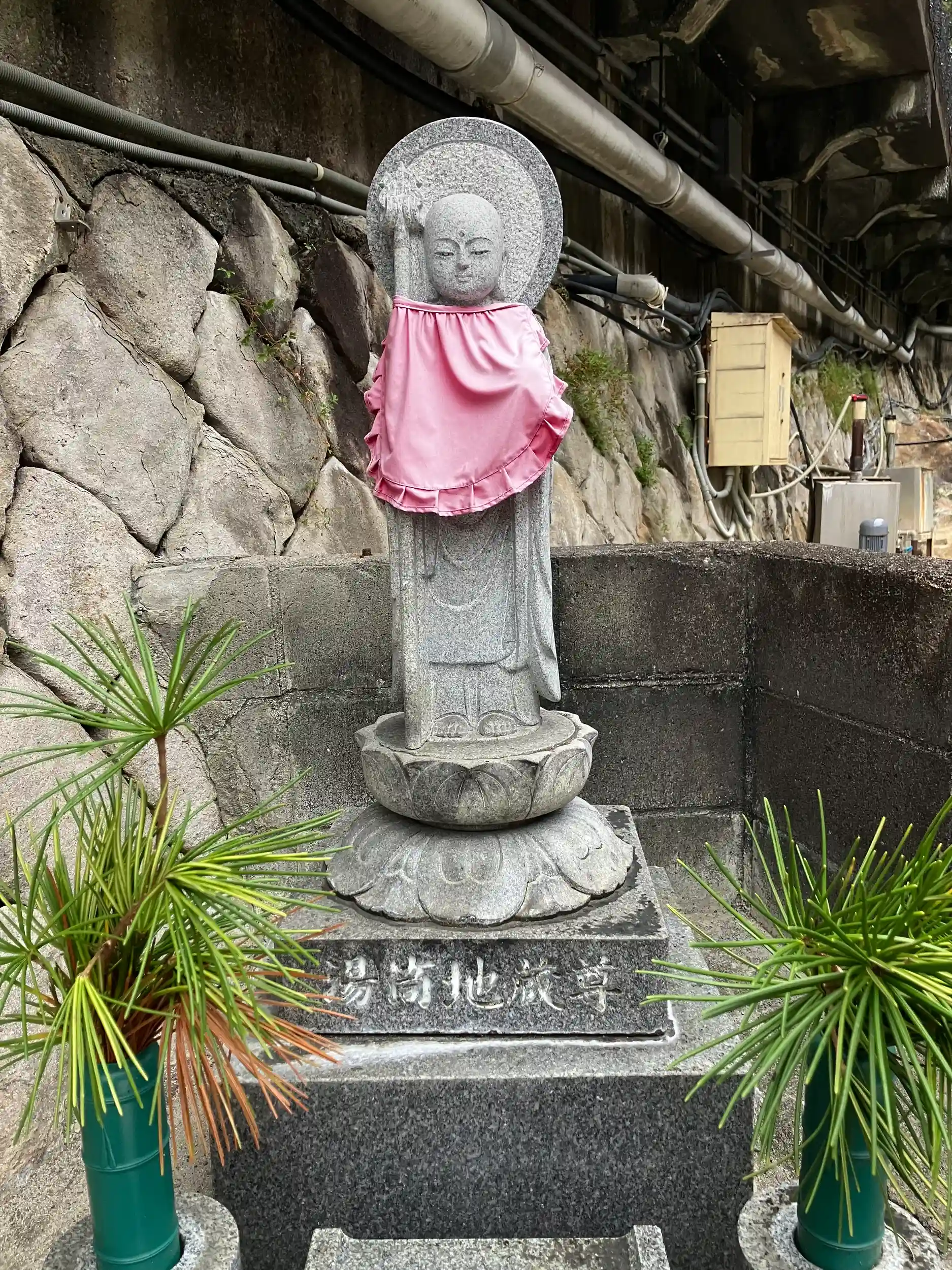 最初の温泉噴出地で湯の花が積もり石化し薬師如来となった事からこれを本尊としている。