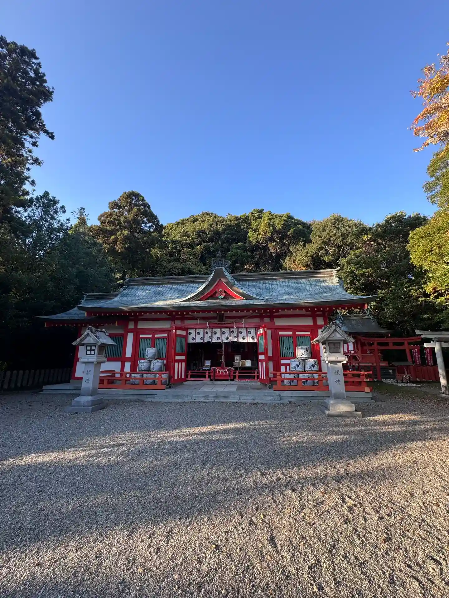 朱塗りの拝殿が映えます