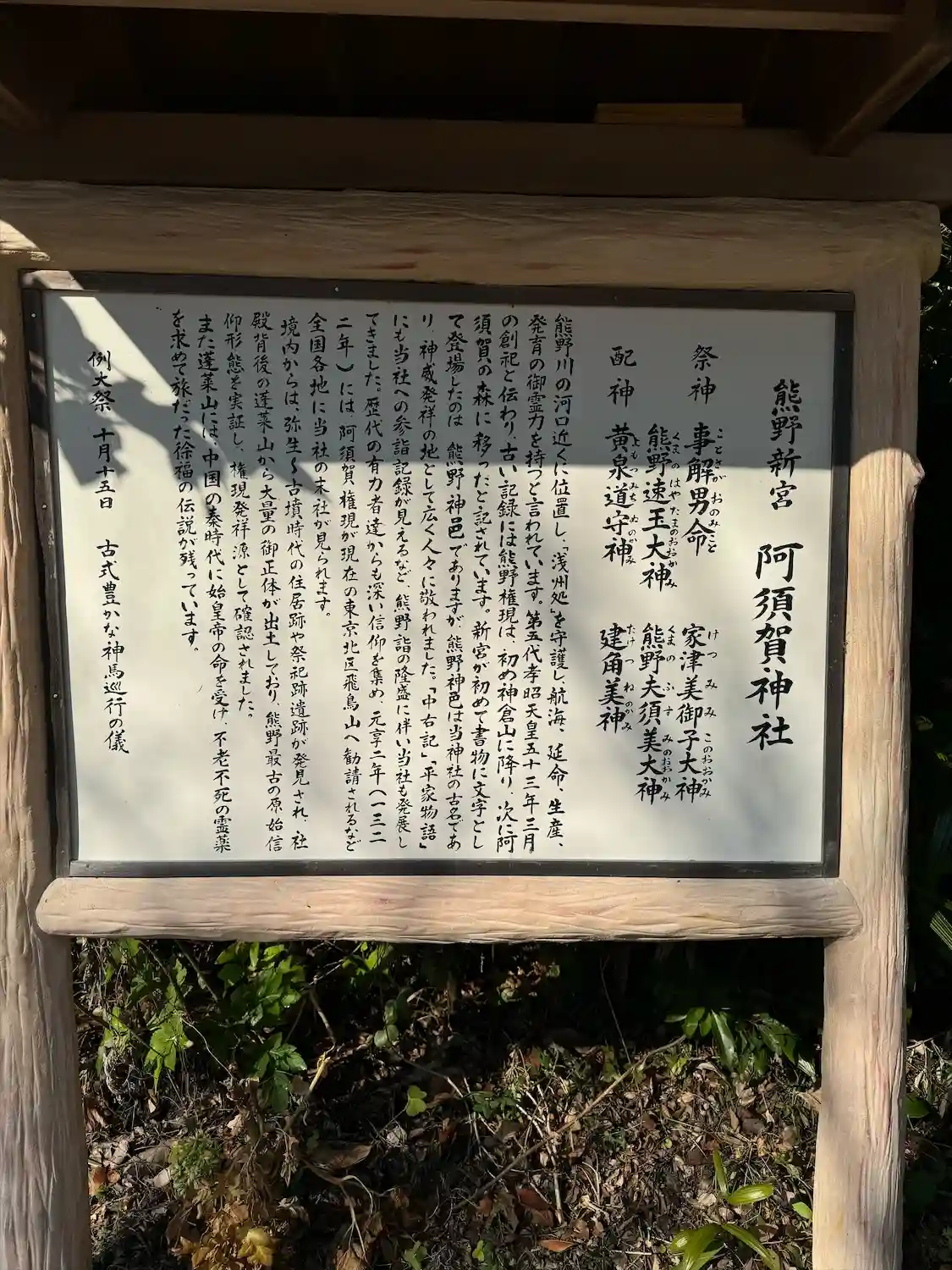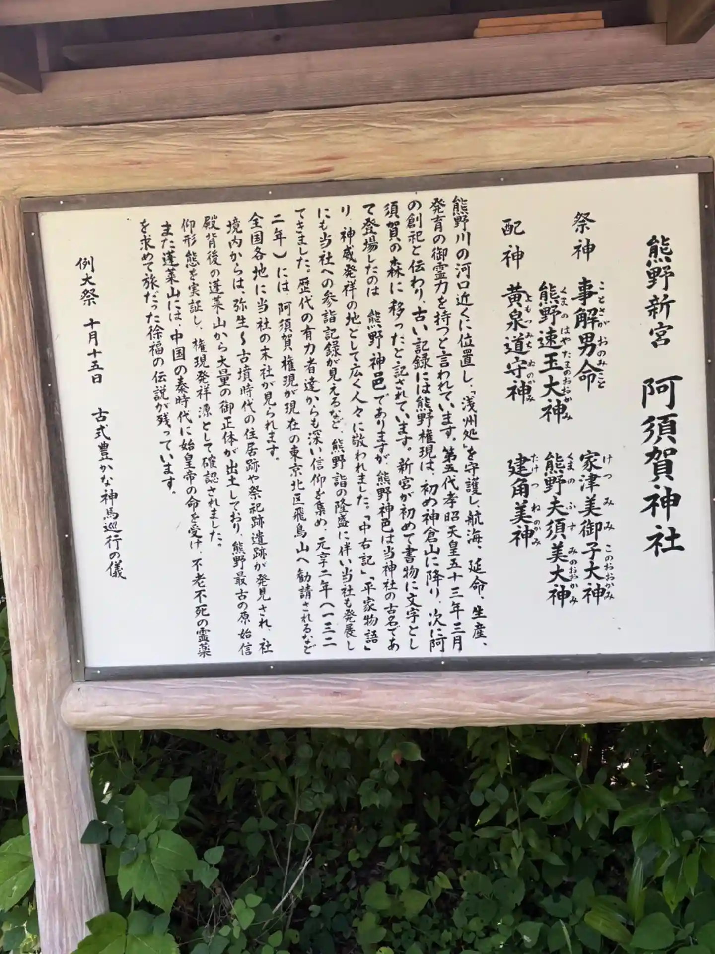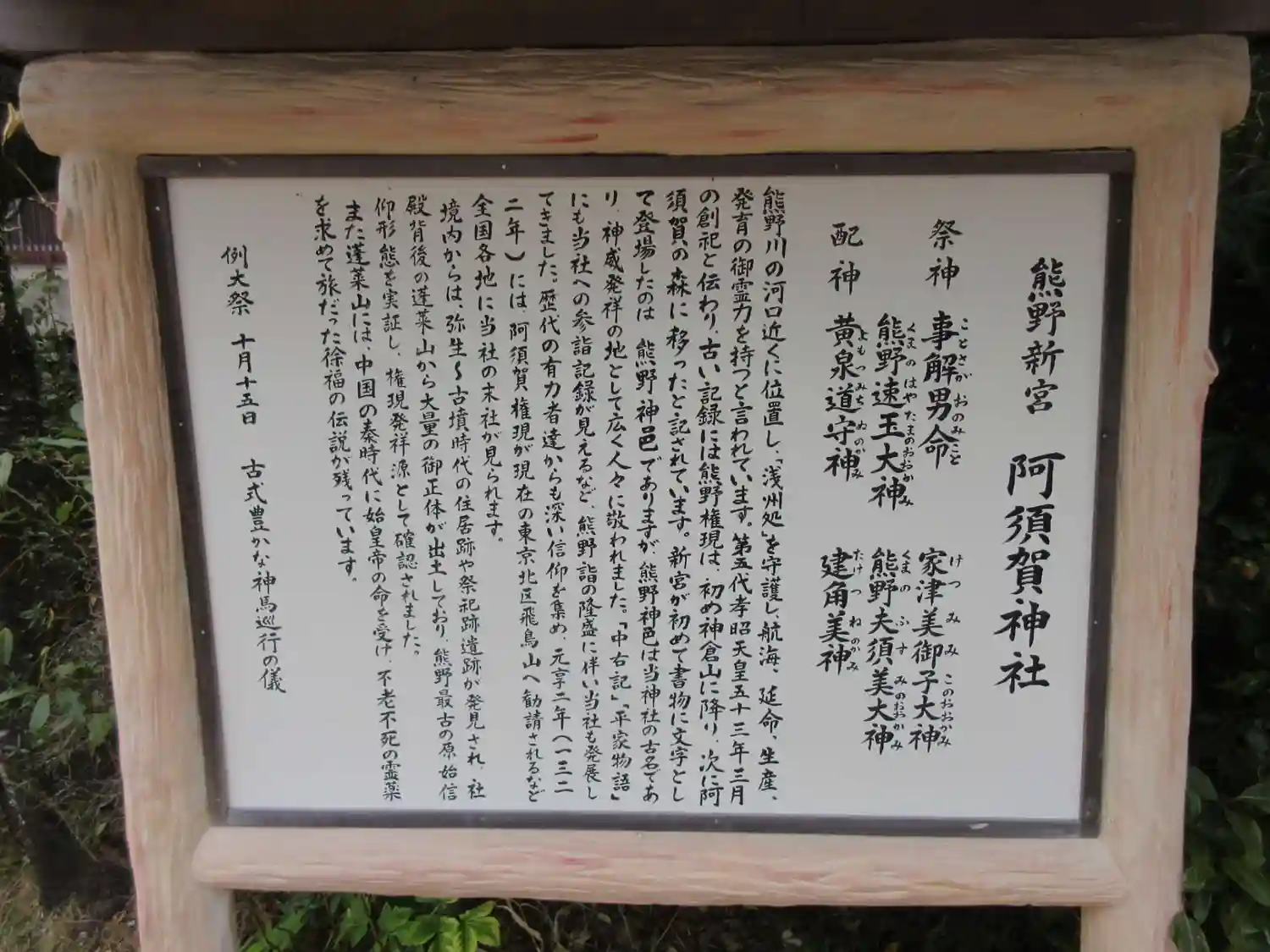 御祭神 事解男命、熊野速玉大神、熊野夫須美大神、家津美御子大神