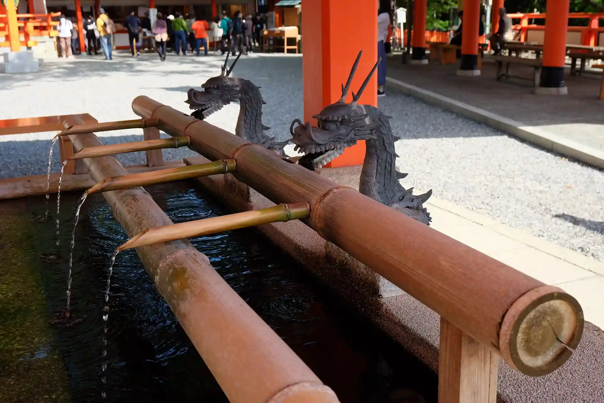 境内にたどり着きました! 手水舎です