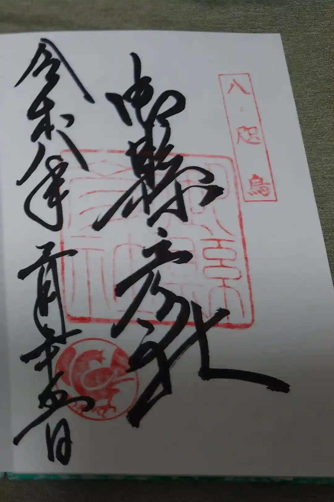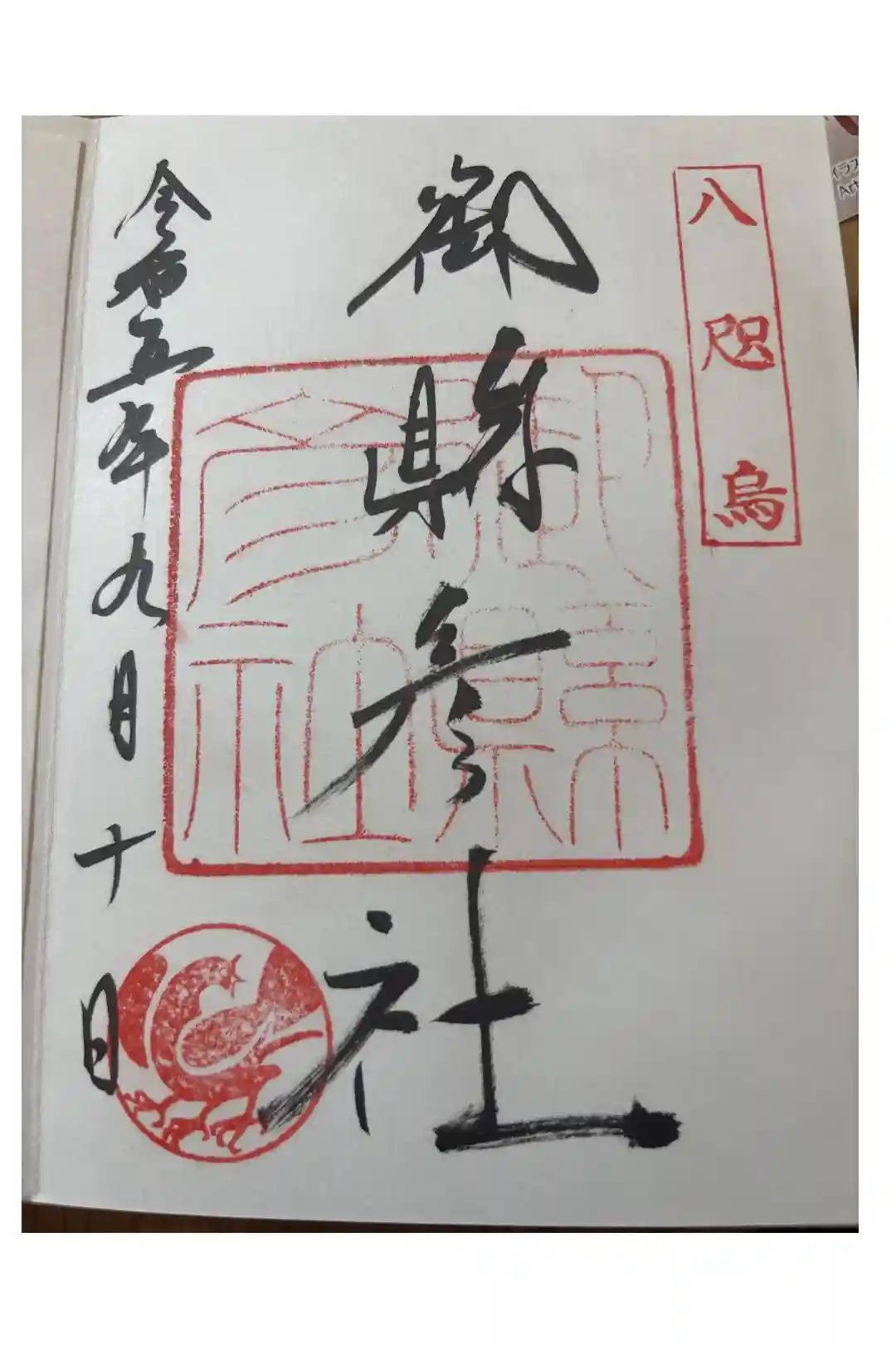 真ん中に御縣彦社と書かれ、右上に八咫烏の印、真ん中に御縣彦社の社印、左下に八咫烏紋が押されています。