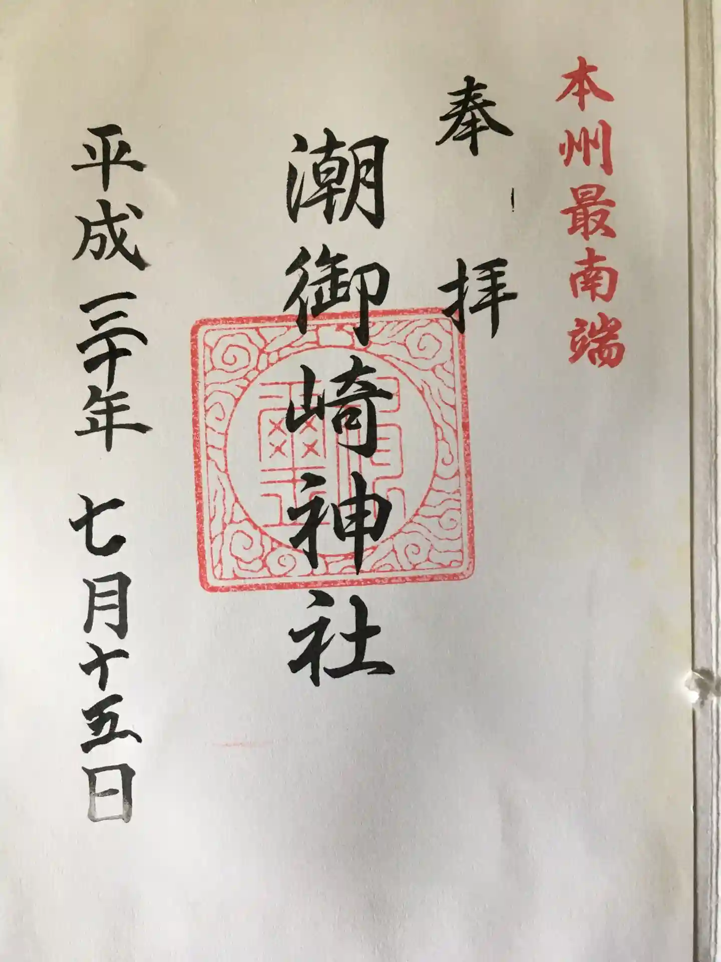 本州最南端の神社です。無人で、御朱印は書置きです。