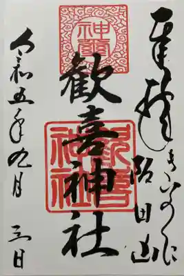 歓喜神社の御朱印・御朱印帳