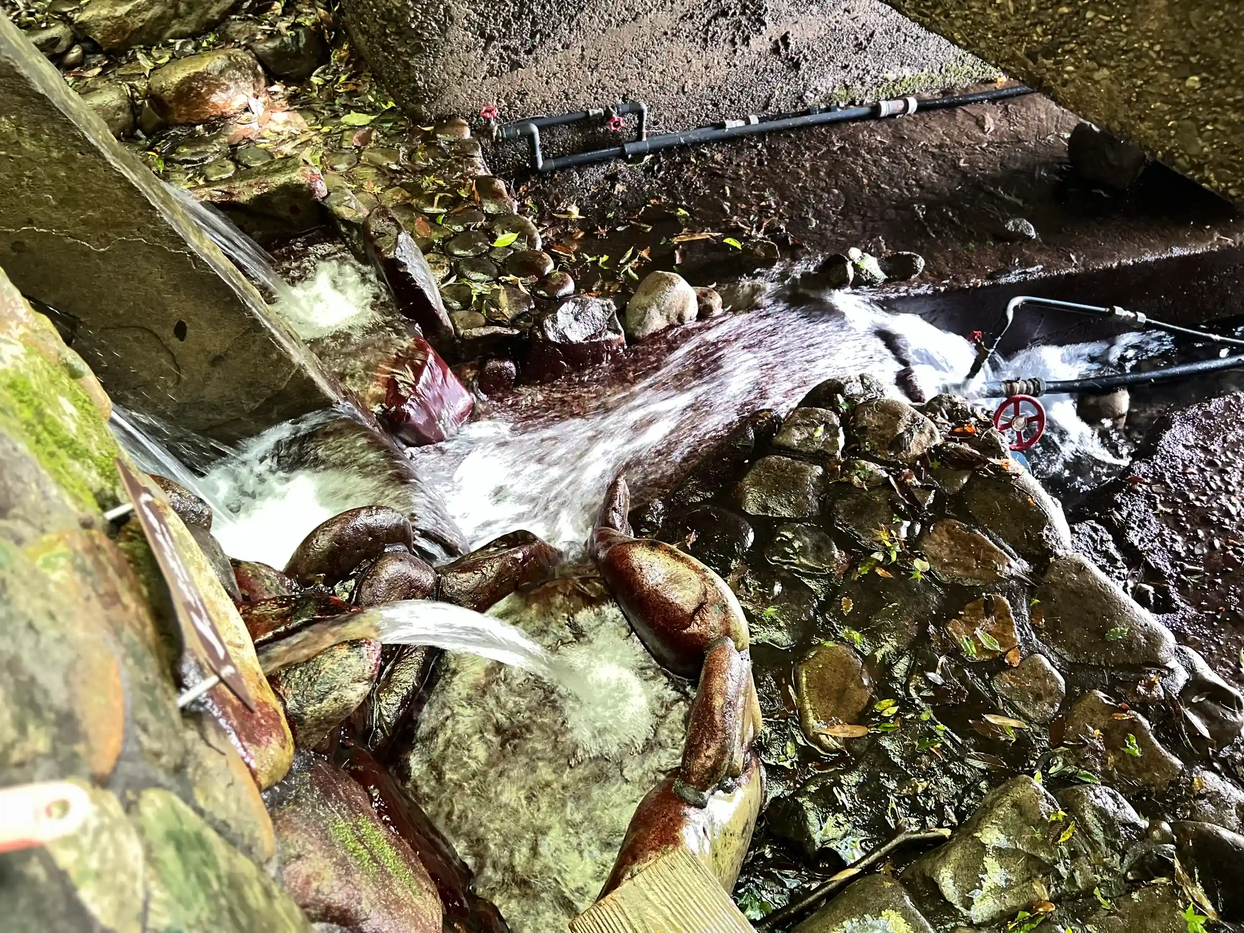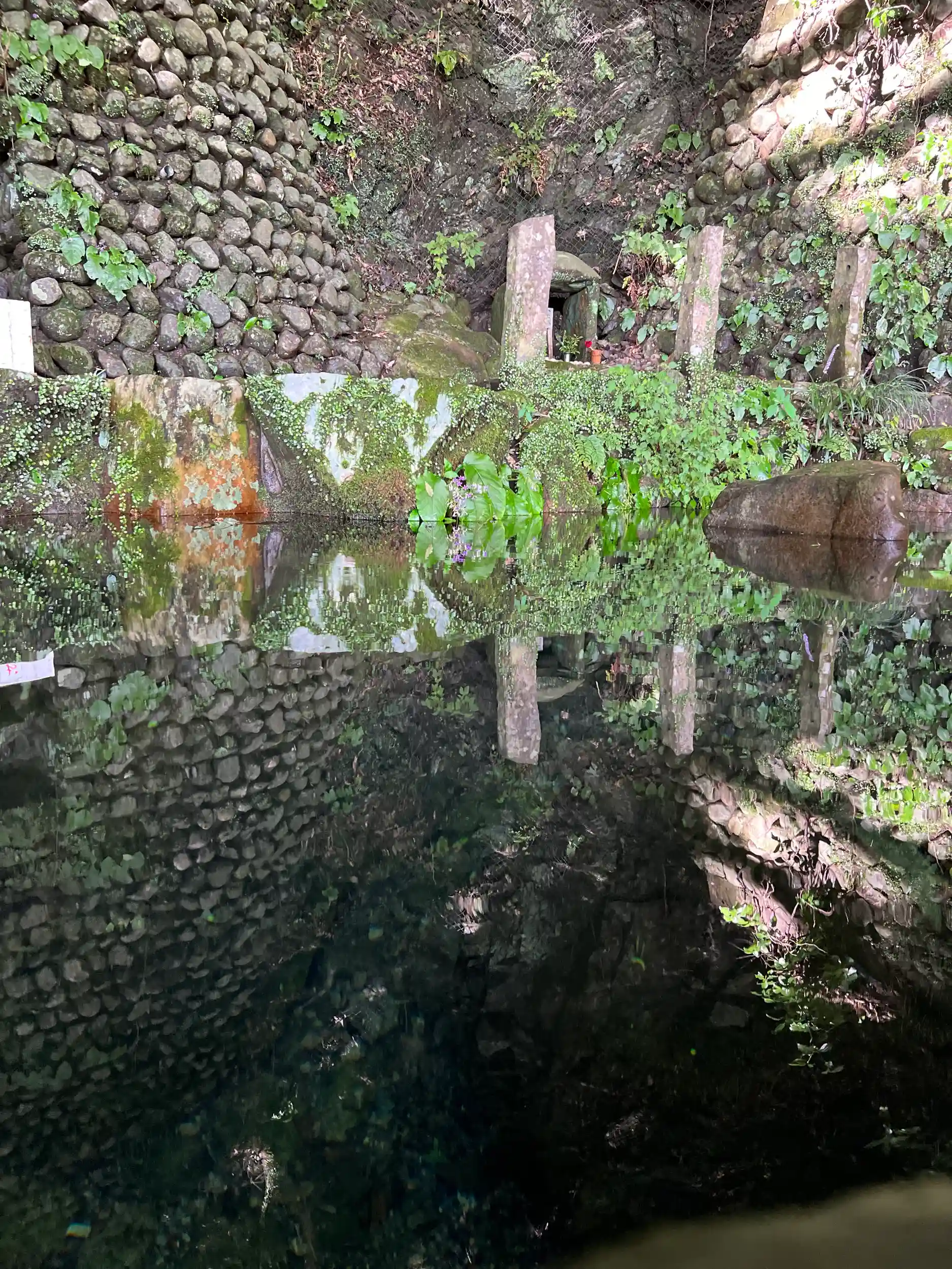 一応柄杓はある。つめたーい!足滑りそうになるー!