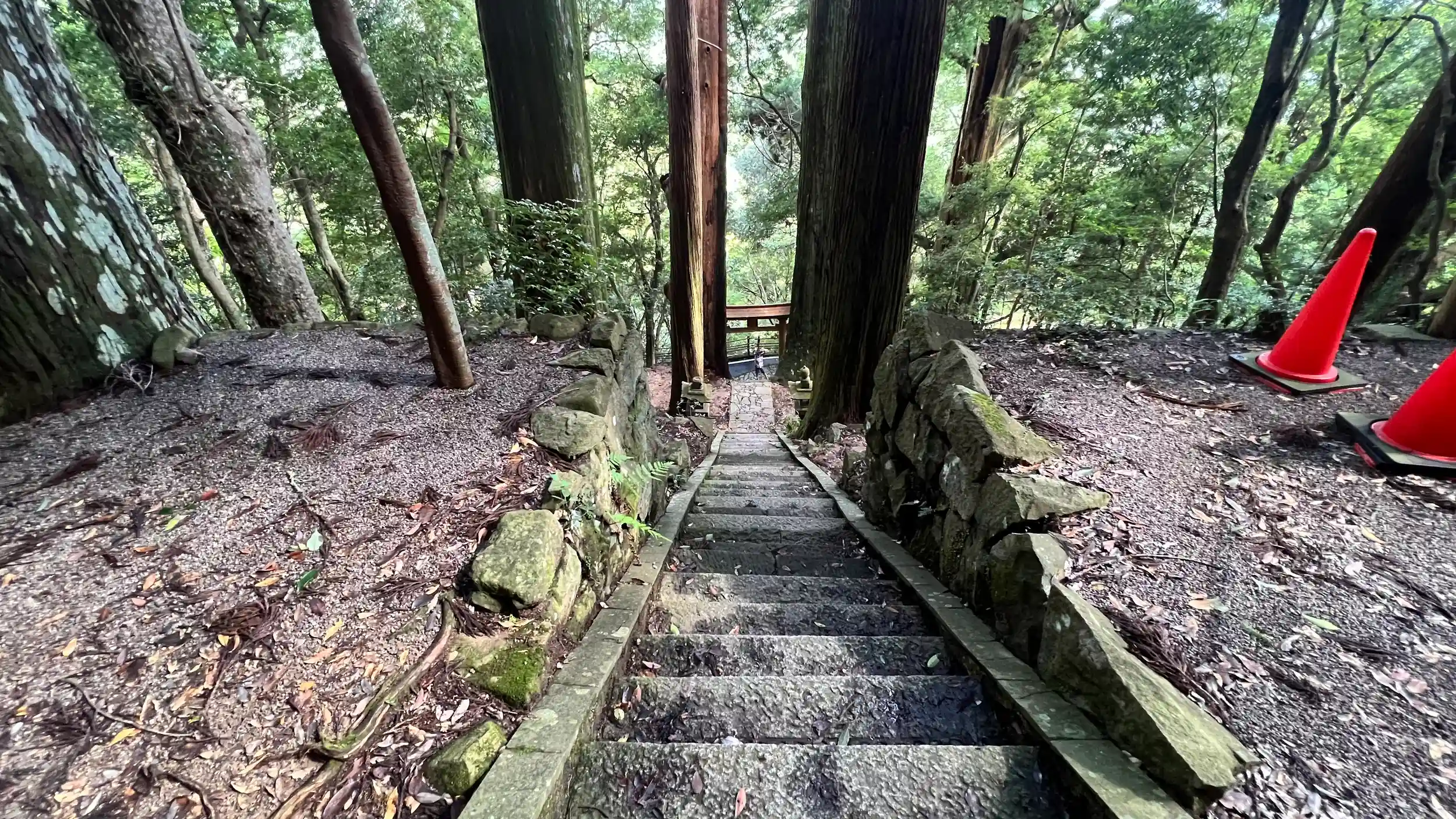 参道。結構急斜面で階段斜めってる