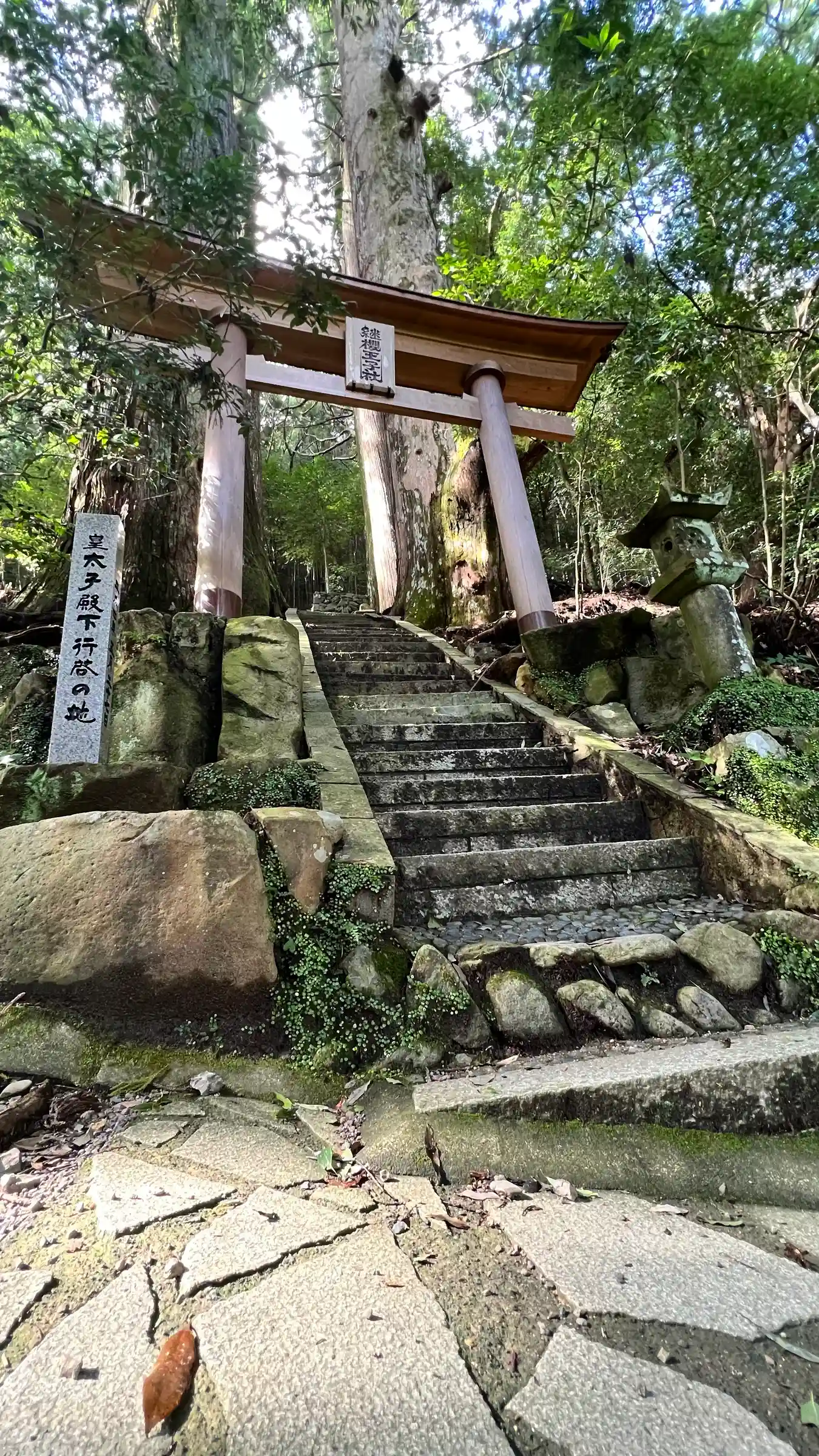 参道。結構急斜面で階段斜めってる