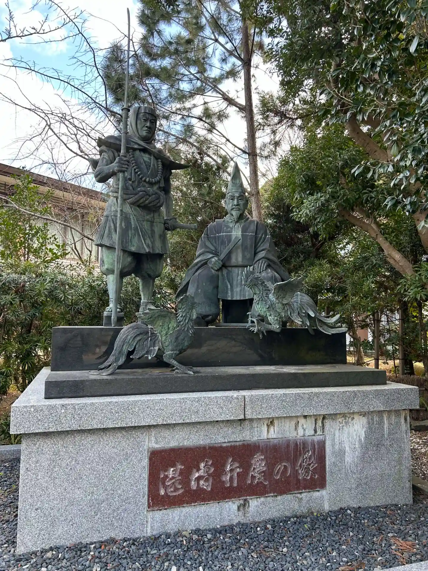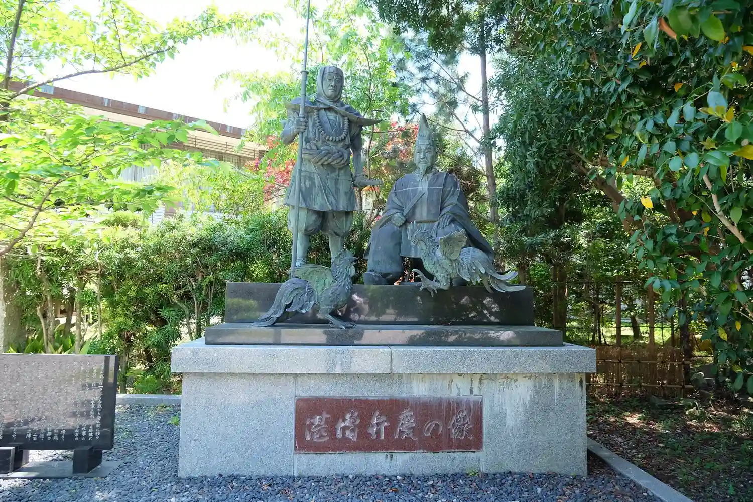 鬪雞を行う湛増と弁慶像の像