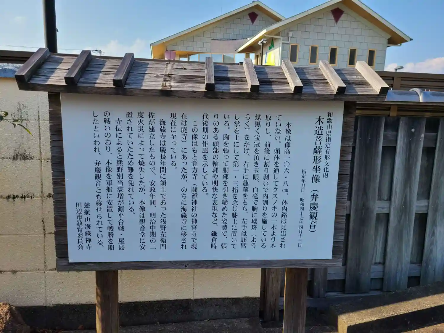 慶長10年(1605)に田辺領主が建立した海蔵寺には「弁慶観音」と呼ばれる木造観音像が安置されてい…