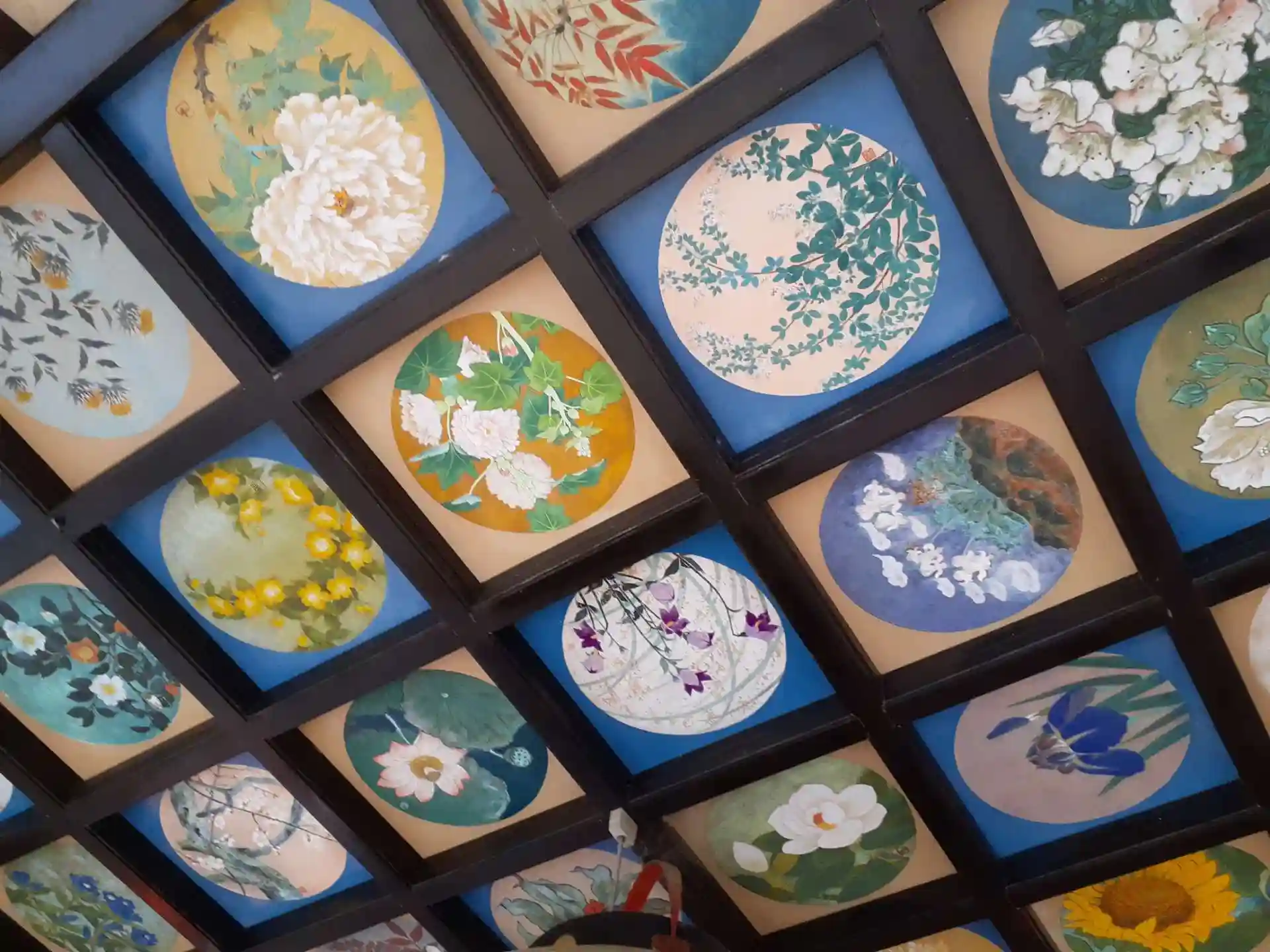 崖にお堂が建てられています✨花天井も素敵でした☺️堂内が華やかです。