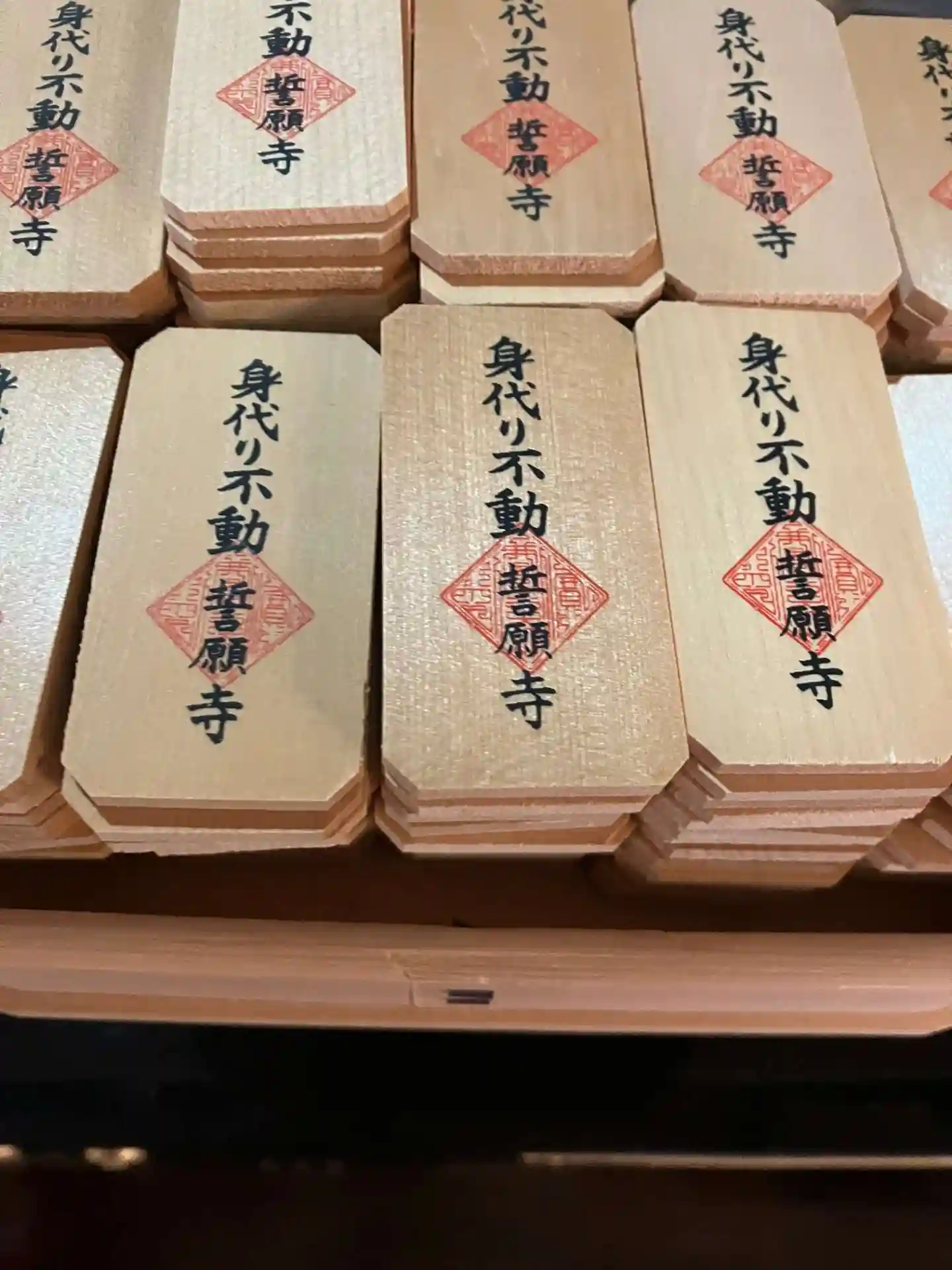 今年の元旦に祈願したお守りと身代わり不動です。