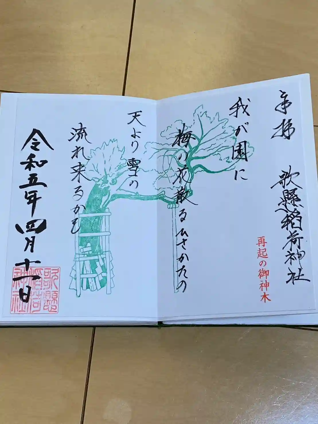 見開きの和歌の直書き御朱印をいただきました。