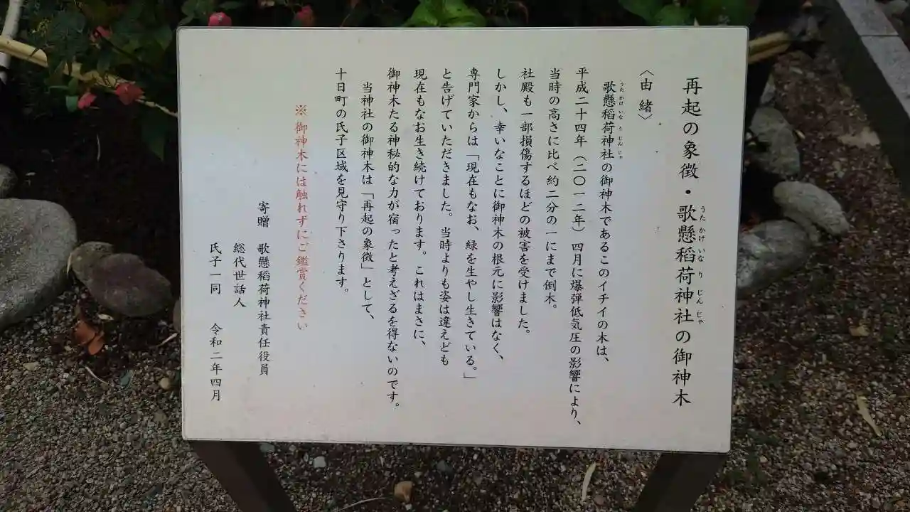 歌懸稻荷神社 参道右側にある(歌懸稲荷神社の由来、十日町鎮座、祭神)について書かれてます