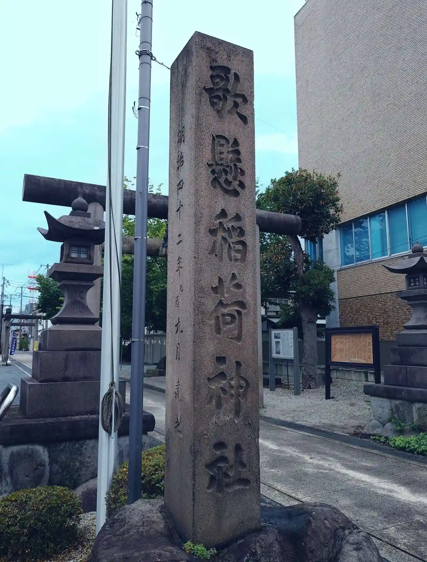 歌懸稻荷神社 入口左側に(歌懸稲荷神社の社号標)の様子です