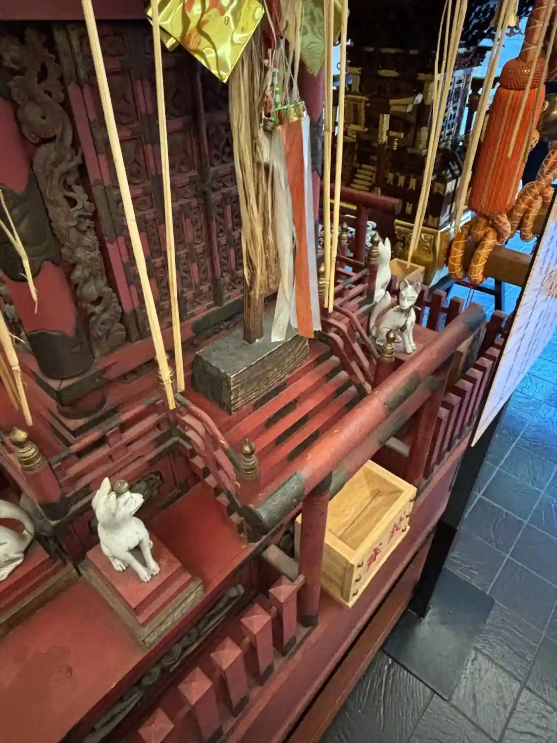 朱塗りで狛狐が拵えられた珍しいタイプ