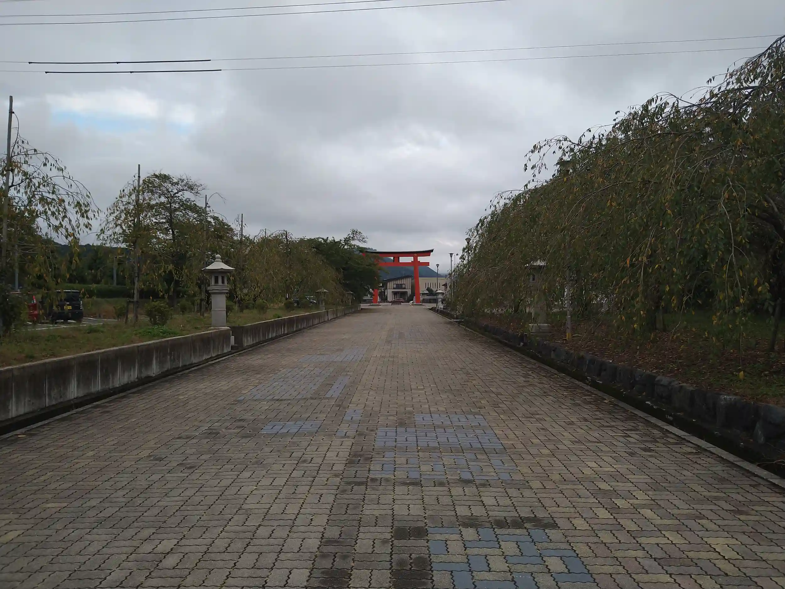 前は砂利の参道だったと記憶してますが、石畳っぽいブロックに変わってました。