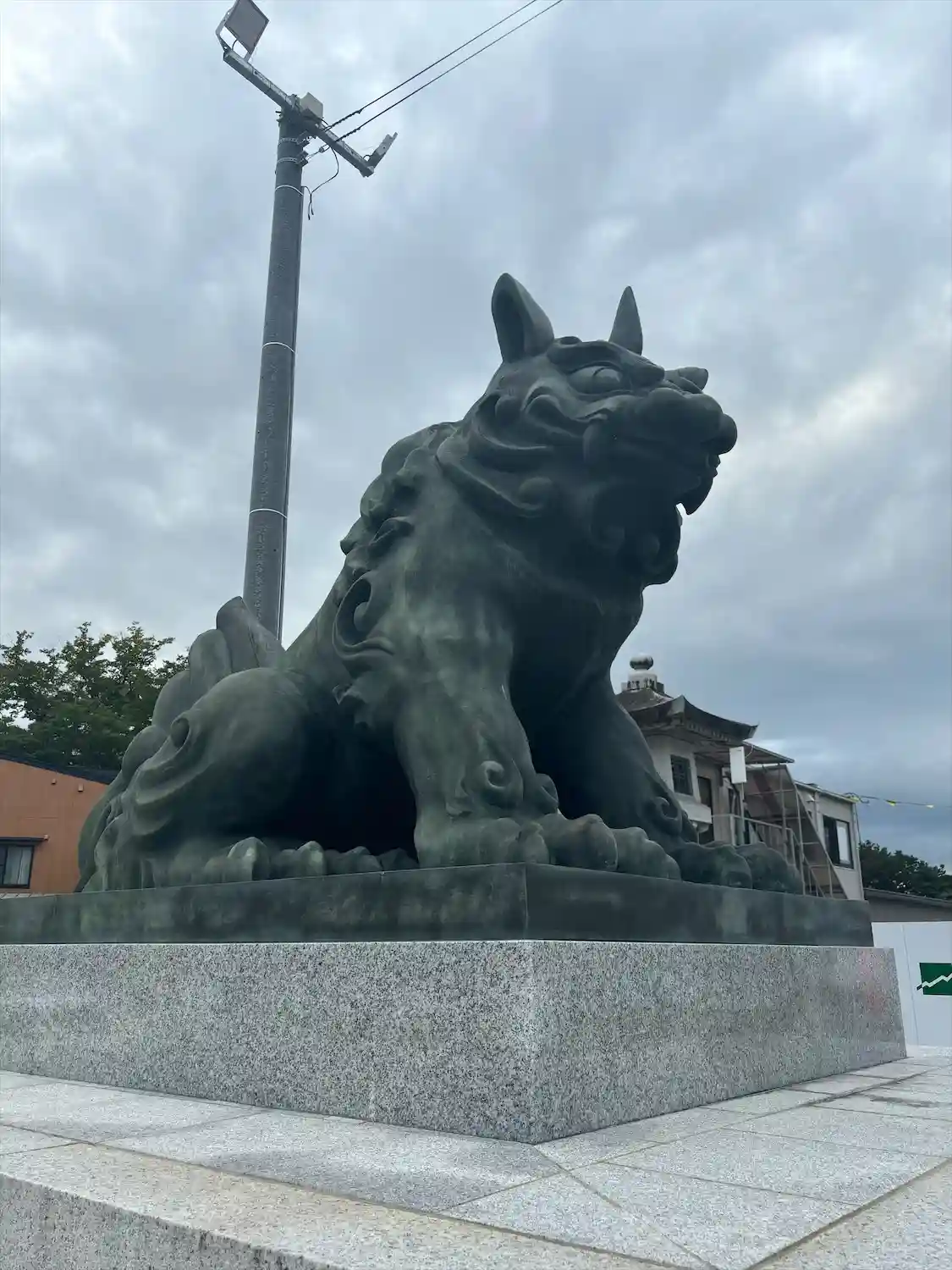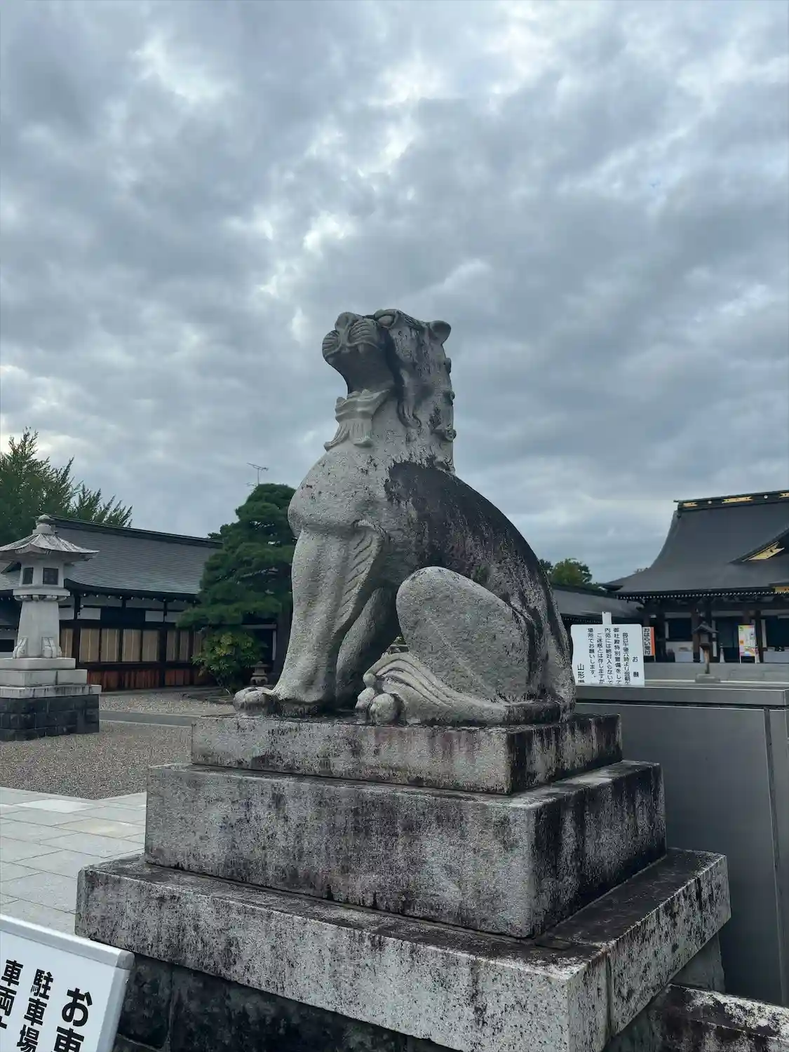 鳥居の前に巨大な狛犬