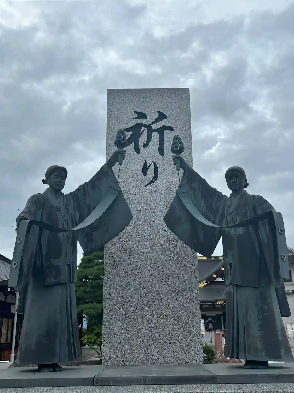 平和への祈りの神楽を舞う巫女像