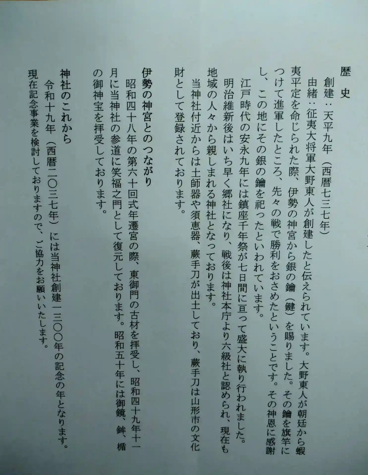 印鑰神明宮 しおり(歴史)が書かれてます